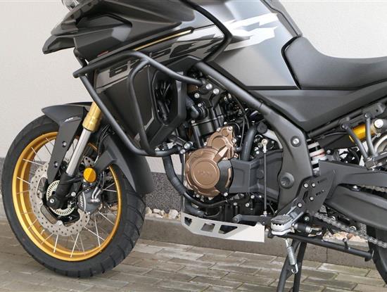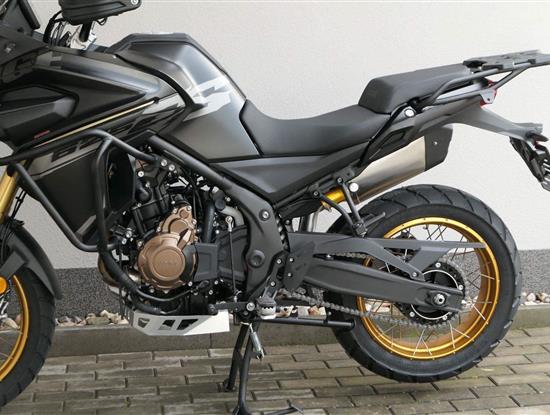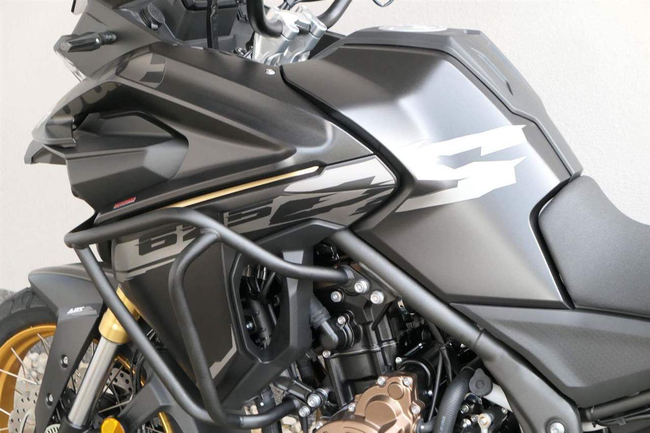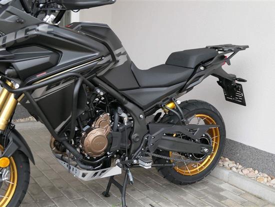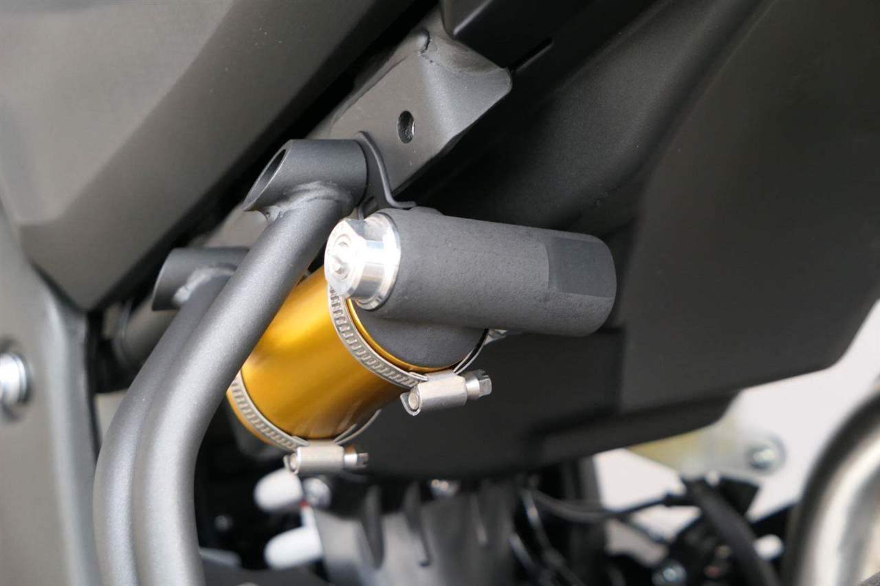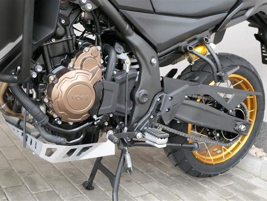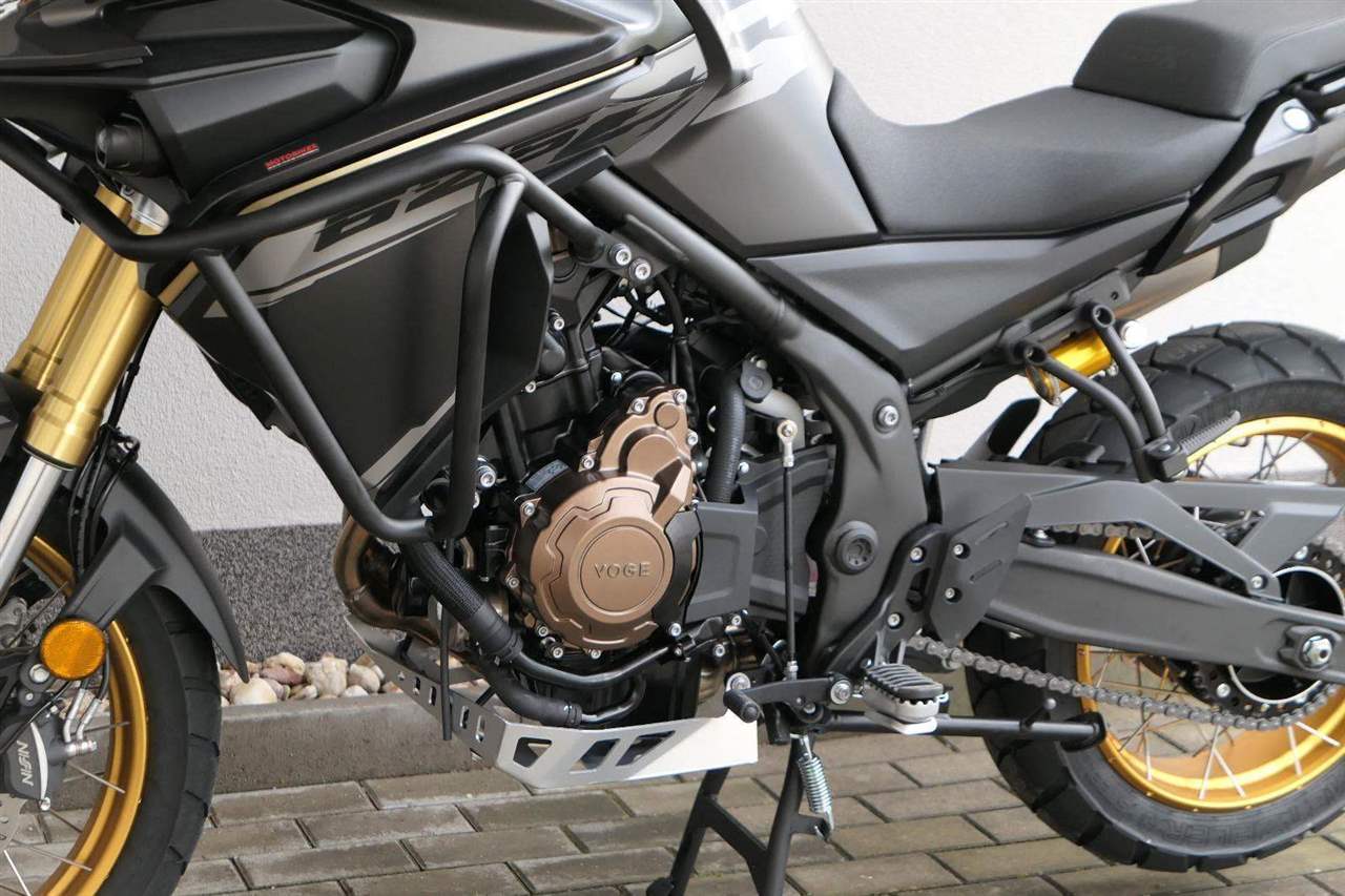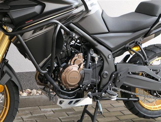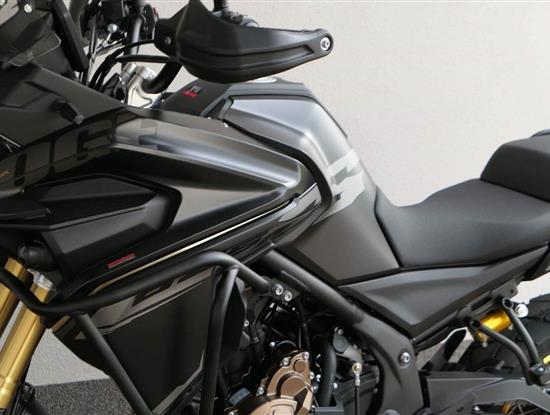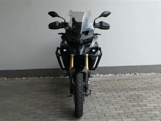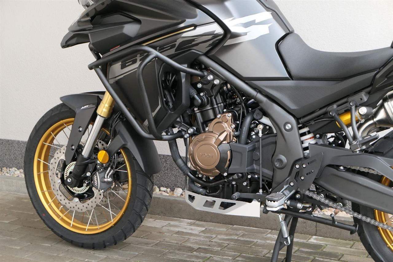 Těšit se můžeš taky na plexi, který si z místa řidiče bez nářadí nastavíš do dvou poloh. Oceníš i hliníkovej kryt motoru, LED světla včetně přídavnejch bodovek, boční i středovej stojan a hafo další výbavičky. Jo, a nově mám taky podsvícený ovladače na řídítkách, takže už žádný tápání ve tmě.