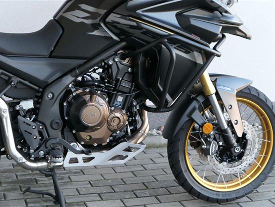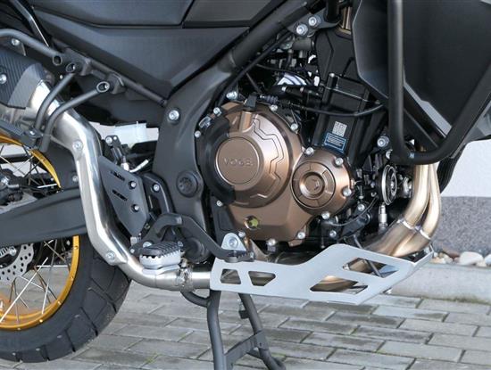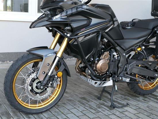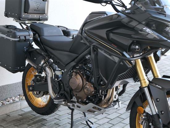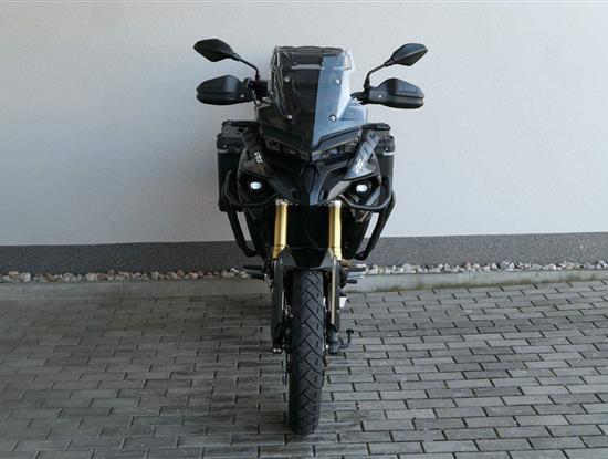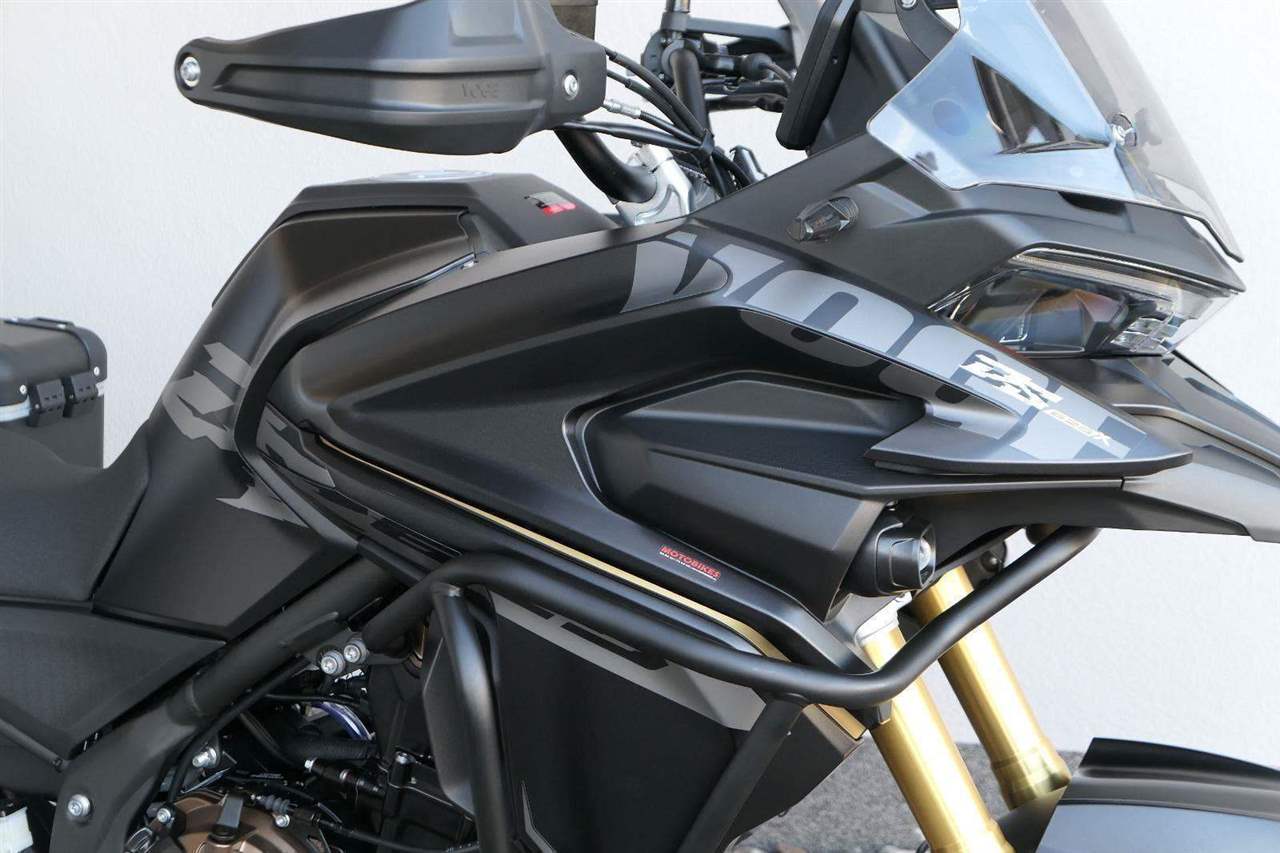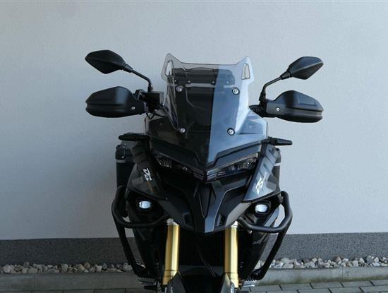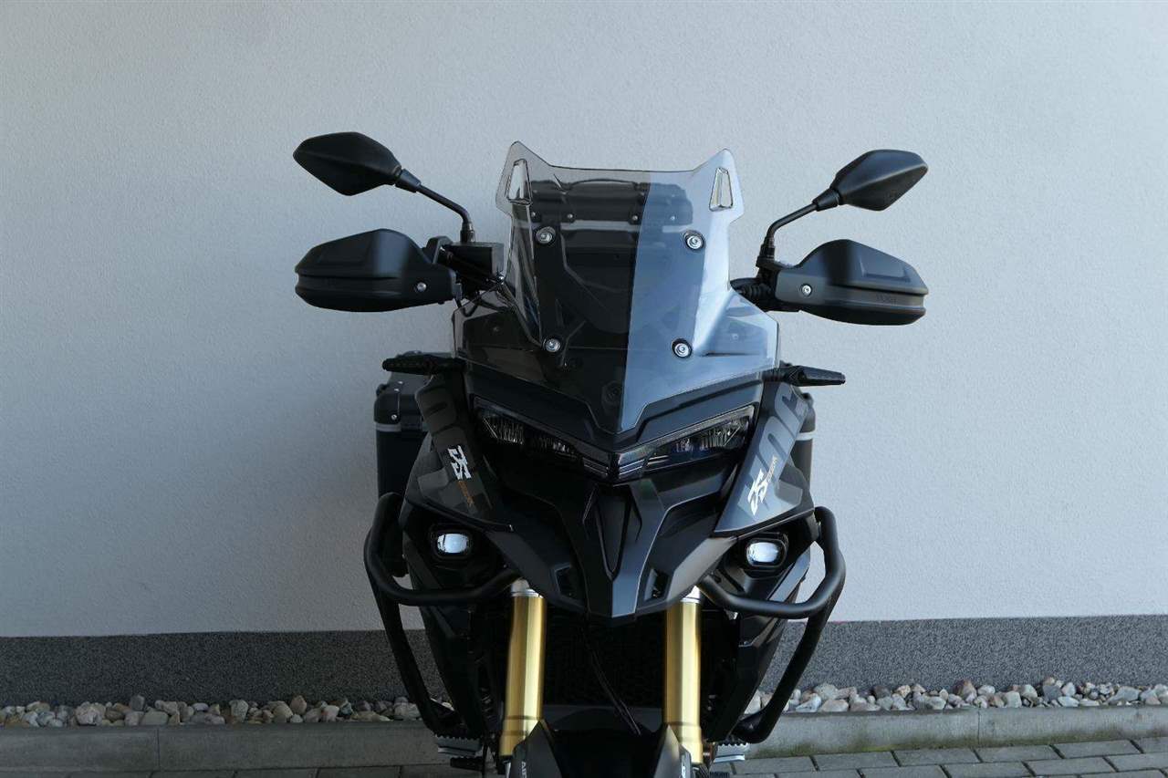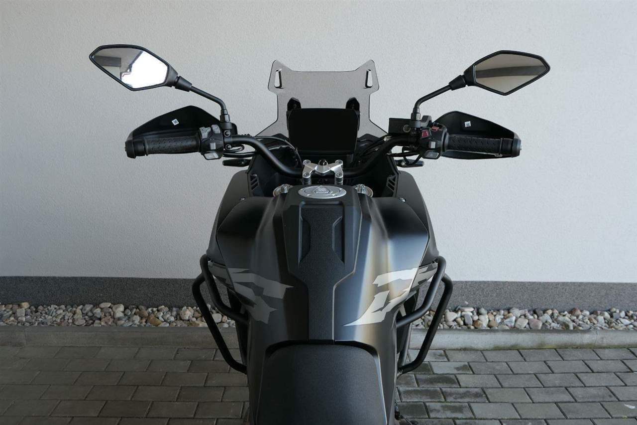 Těšit se můžeš taky na plexi, který si z místa řidiče bez nářadí nastavíš do dvou poloh. Oceníš i hliníkovej kryt motoru, LED světla včetně přídavnejch bodovek, boční i středovej stojan a hafo další výbavičky. Jo, a nově mám taky podsvícený ovladače na řídítkách, takže už žádný tápání ve tmě.