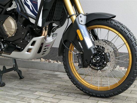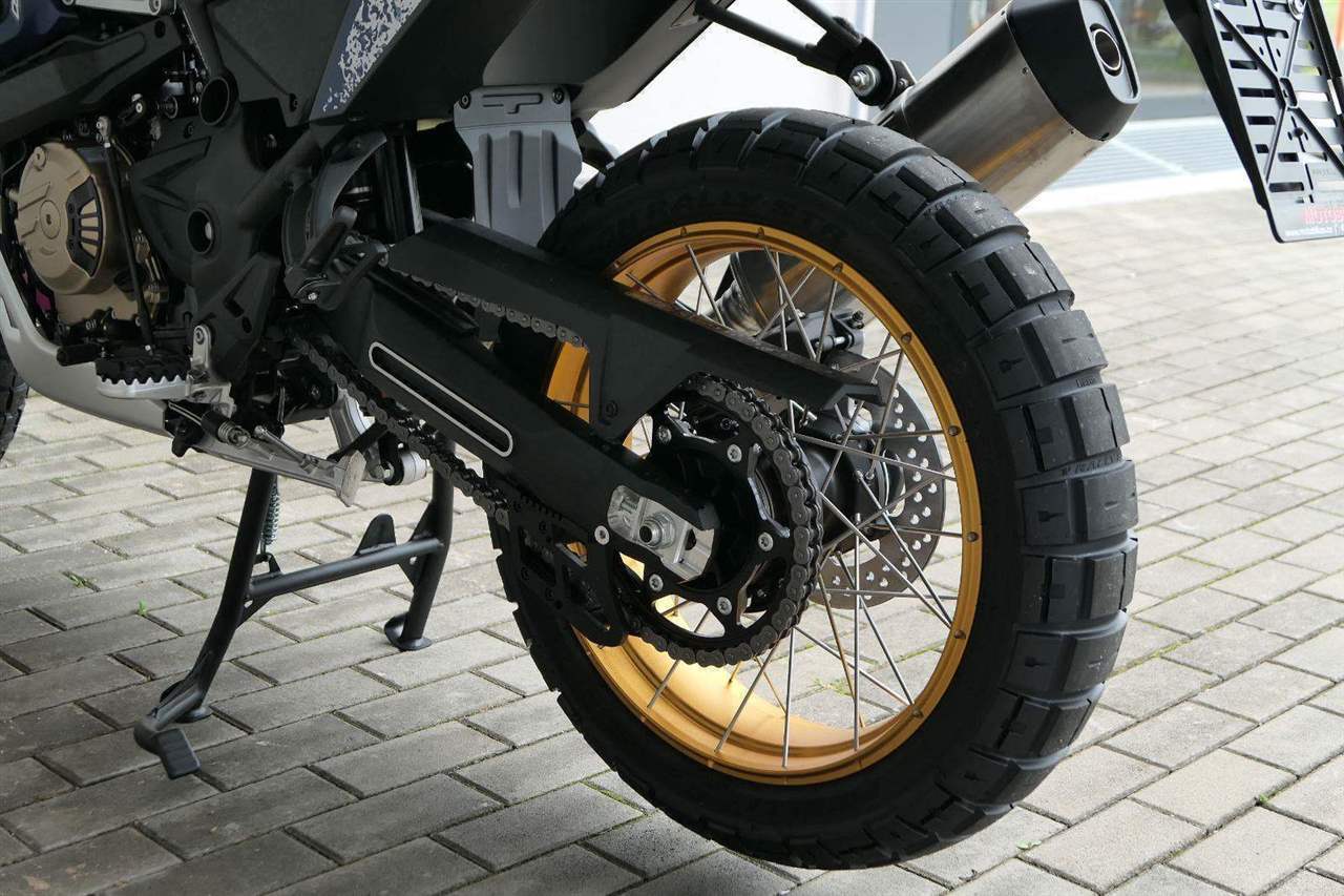 Vpředu najdeš jednadvacítku, vzadu osmnáctku – prostě offroad klasika. Kola jsou samozřejmě drátový a bezdušový. Na ráfkách dostaneš gumy Pirelli Scorpion Rally STR, který si hravě poraděj jak s asfaltem, tak s terénem.