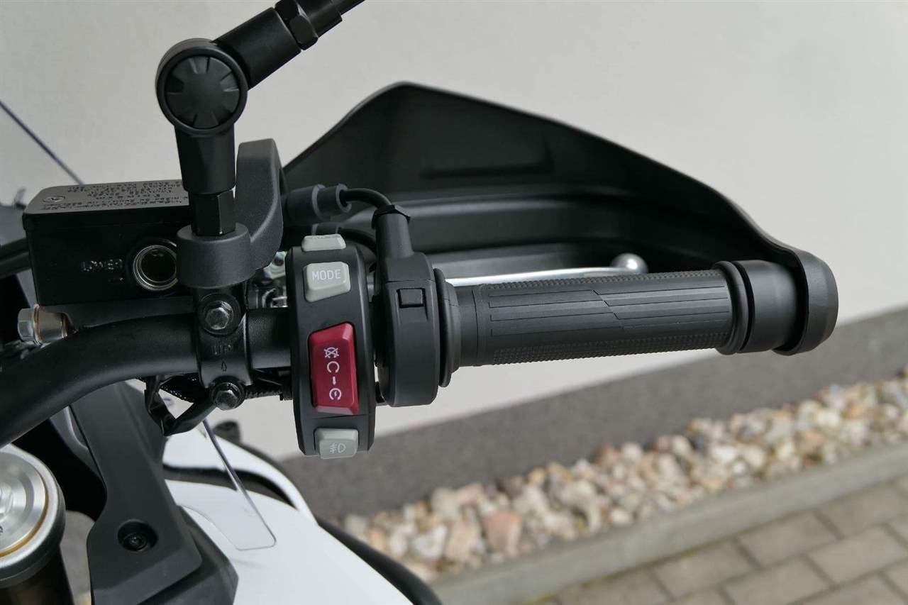 Do vínku jsem dostala elektro výbavu přesně podle teréňácký bible. ABS si můžeš vypnout buď komplet, nebo jen na zadním kole. Vypinatelnou mám samozřejmě taky kontrolu trakce. Hlavně v divočině voceníš rotační tlumič řízení. A když bude kosa, uvítáš vyhřívaný sedlo i gripy. Jasný, určitě seš taky drsňák jako já, ale vyrazit vstříc dobrodružství s troškou komfortu není žádná vostuda.