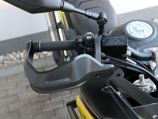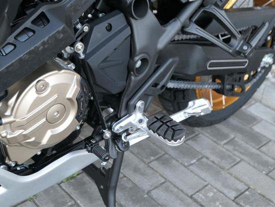 Můj štíhlej pas ti dovolí užít si jak jízdu vestoje, tak vsedě. Vysoký plexi mám fikaně posunutý dopředu, takže ti nebude mlátit do brady třeba při skocích. No a moje stupačky jsou nejen prostorný, ale samože taky zubatý, takže tě podržej v každý situaci.