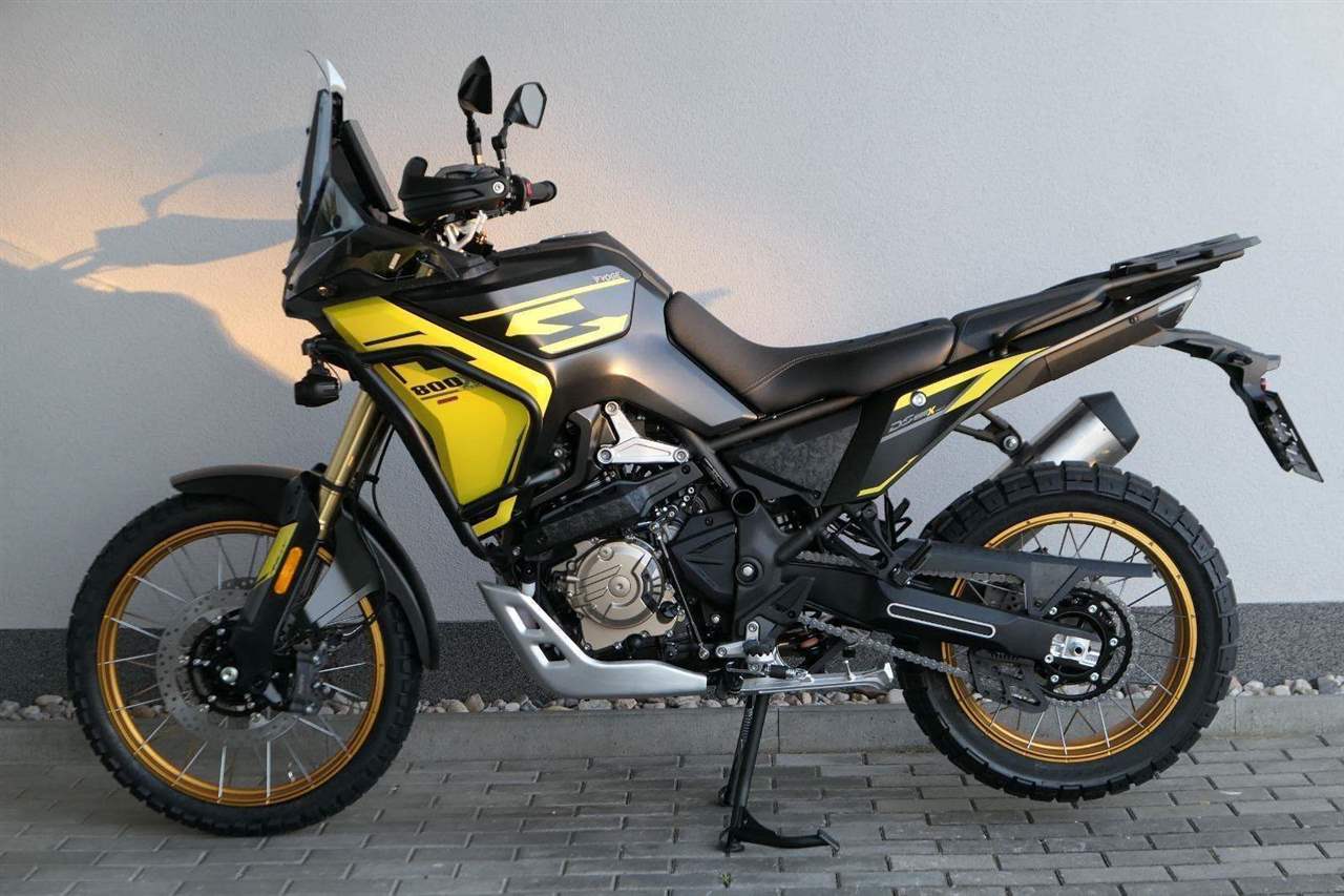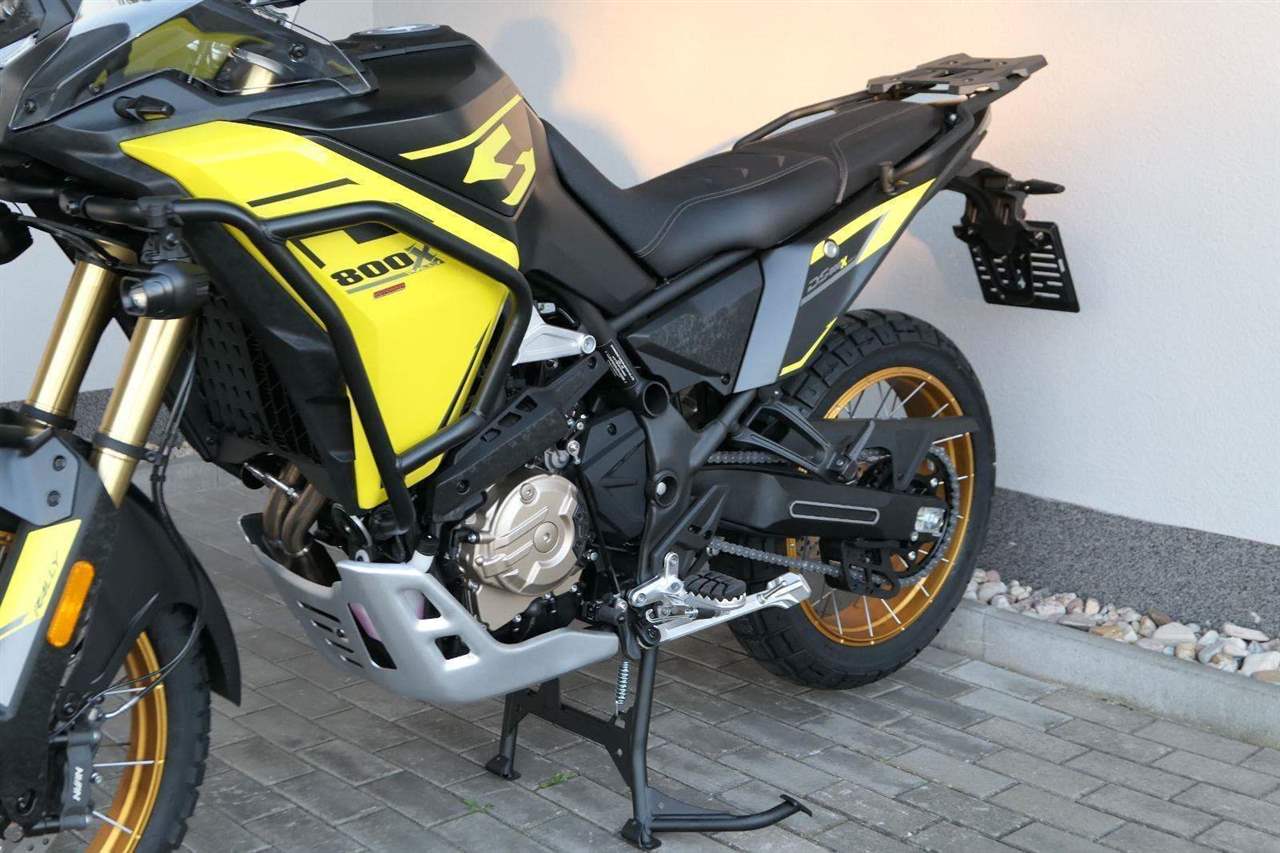 Fungl novej dvouválec 800 ccm. Z tohodle dvouválcovýho vodníka vyždímáš pořádnou sílu. 94 koní tě požene až 190 kiláků v hodině. Vrnět blahem budeš i nad krouťákem – maximum 81 Nm má už v 6 500 otáček. Tenhle fungl novej motor z tebe udělá skutečnýho siláka, ať už budeš frčet po dálnici nebo dovádět v terénu.