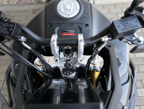 Mám fungl novej dvouválcovej motor vo objemu 798 kubíků, s krouťákem 81 Nm už v 6 500 otáčkách a síle 94 koní. Když je vypustíš na svobodu, dokážou tě vystřelit až ke stodevadesátce. Šestistupňová převodovka s hydraulickou spojkou a anti-hoppingem ti kryje záda i při vodvážným podřazování.