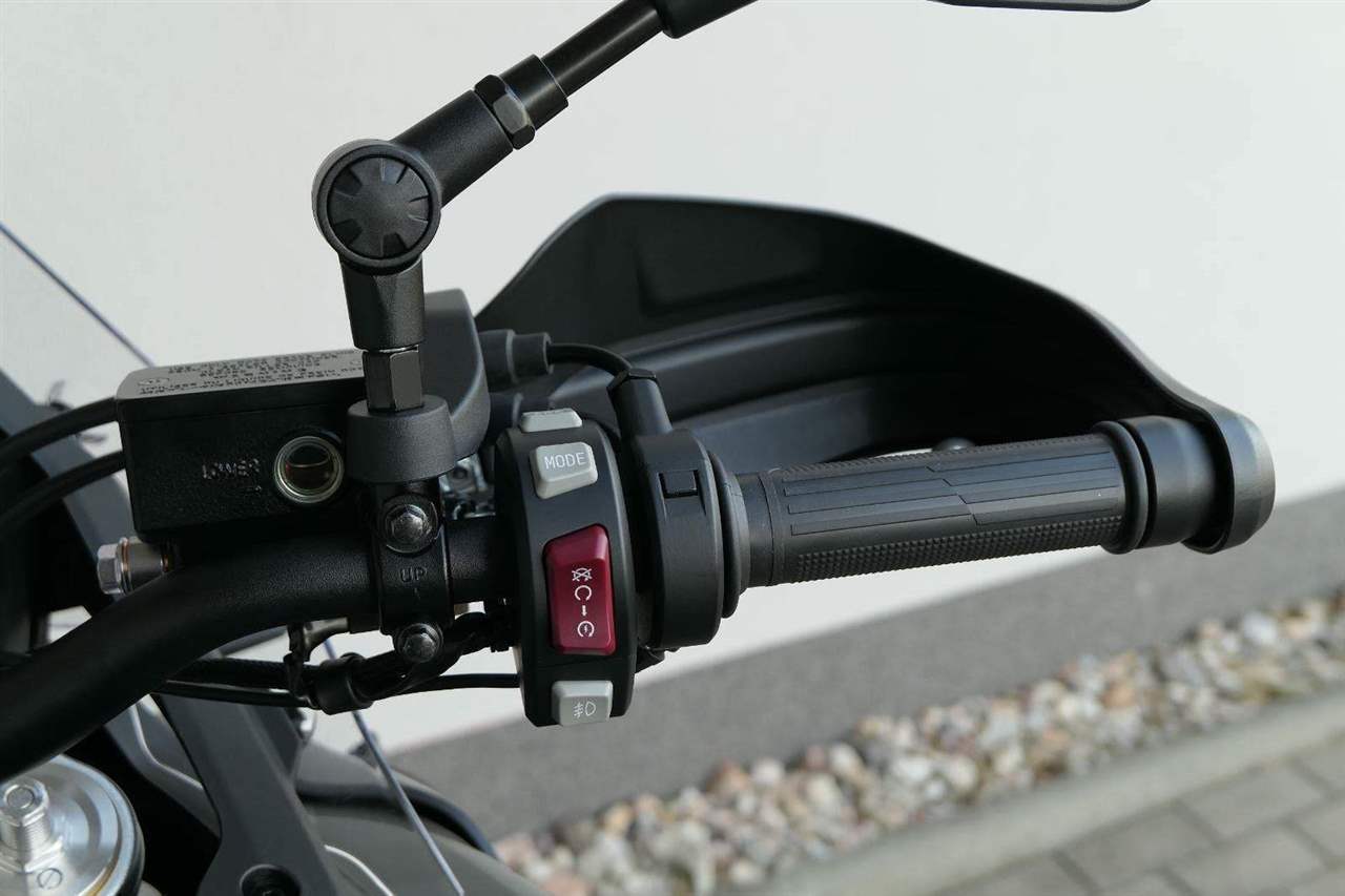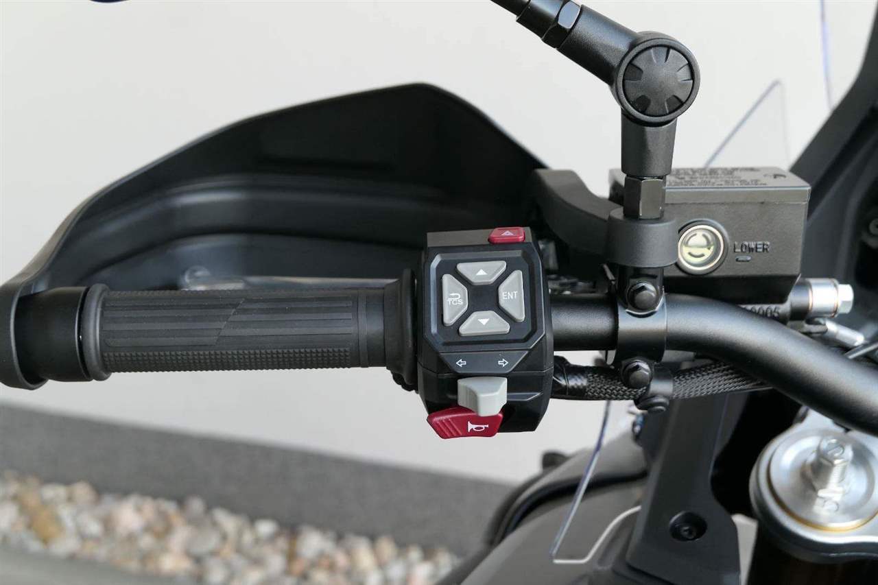 Do vínku jsem dostala elektro výbavu přesně podle teréňácký bible. ABS si můžeš vypnout buď komplet, nebo jen na zadním kole. Vypinatelnou mám samozřejmě taky kontrolu trakce. Hlavně v divočině voceníš rotační tlumič řízení. A když bude kosa, uvítáš vyhřívaný sedlo i gripy. Jasný, určitě seš taky drsňák jako já, ale vyrazit vstříc dobrodružství s troškou komfortu není žádná vostuda.