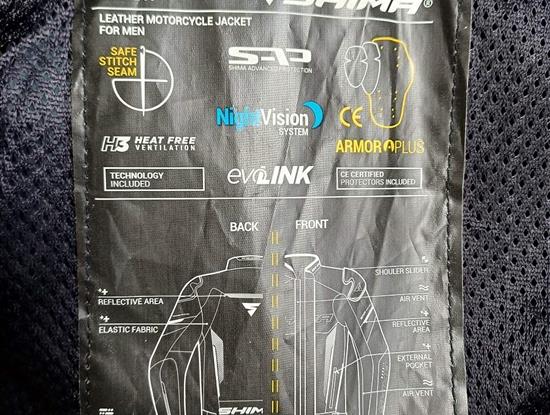 Střih dokonale přizpůsobený tělu jezdce, rozsáhlý systém ventilace je patrný i při nízkých rychlostech, Strečové vložky v oblasti ramen a loktů zvyšují pohodlí při jízdě, stahovací šňůrka v pase pro dokonalé přizpůsobení, možnost připevnění hřejivé vesty, pásek pro spojení s kalhotami, vyrobeno z vysoce kvalitní pravé kůže třídy A+ o tloušťce 1,2 až 1,4 mm., dvojitě zesílené švy, pevné jezdce z TPU na ramenou, certifikované speciální prodyšné chrániče loktů a ramen ze speciálního materiálu, který v okamžiku nárazu zpevňuje pokožku, certifikovaný chránič zad vyrobený ze speciálního materiálu zpevňujícího v okamžiku nárazu, kapsa na hrudním chrániči v přední části, reflexní vložky pro lepší viditelnost ve tmě, atd.