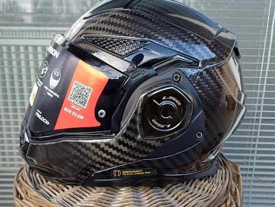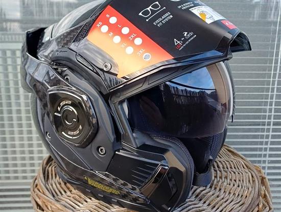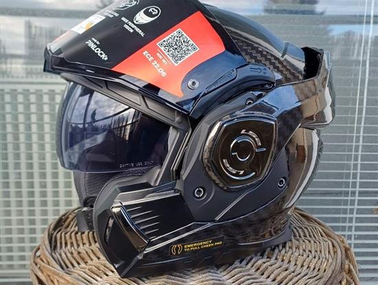 Materiál skořepina karbon, vnitřní EPS, lícnice a hlavová výstelka: X-Static Silver s obsahem stříbra vyjímatelné pratelné antibakteriální, ventilace brada čelo temeno týl, ventilační systém: s ovládáním vstupů vzduchu 8 vstupů 4 výstupy, interiér kompatibilní s dioptrickými brýlemi, bradový deflektor, příprava na interkom, plexi ochrana proti poškrábání a UV záření, široké zorné pole, snadná výměna plexi bez nutnosti dalších nástrojů (Quick Release System), sluneční clona, zapínání mikropřezka, bezpečnostní systém lícnic (Emergency system), dvojí homologace P/J, homologace ECE 22.06.