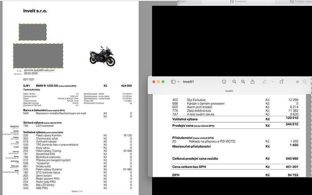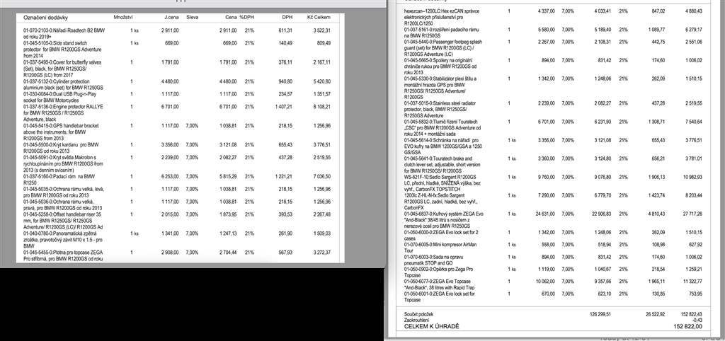 Vložit nový inzerát Upravit Motocykly na prodej BMW R 1250 GS Přehled Upravit 419 000 Kč BMW R 1250 GS 2020 Prodám BMW R 1250 GS, r.v. 2020, najeto cca 10 000 km. Motorka je minimálně využívaná, ve velmi pěkném stavu a v maximální výbavě. Viz prilozene faktury pro predstavu. Ma vše. Obsahuje maximum prvků z výroby, tak i doplňky Touratech, včetně náhradních výpletů nebo i vestavěného TT boxu s nářadím a spousty dalšího. Zakoupena v Inveltu (06/2020). Aktualizace: Provedena nová STK platná do roku 2030 a zároveň pravidelná roční předsezónní prohlídka v servisu BMW (po 10 000 km). první majitel nově přidáno Objem: neuvedeno Vyrobeno: 2020 Najeto: 10 000 km Výkon: neuvedeno STK: 04/2026 Původ: CZ Výrobce: BMW Model: R 1250 GS Zařazení: enduro, silniční Zobrazeno: 17×, servisní knížka Lokalita: zdiby, Středočeský kraj Vloženo: 10.4.2026 Typ inzerátu: bezplatná inzerce Vložit do schránky Nahlásit závadný inzerát Sdílet inzerát Prodávající Telefon: 60455577 Odpovedět na inzerát Podobné inzeráty BMW R 1250 GS 2019 Královéhradecký 455 000 Kč BMW R 1200 GS LC 2016 Pardubický 329 000 Kč BMW R 1150 R 2005 Kraj Vysočina 69 999 Kč BMW R 1200 GS 2011 Praha 198 000 Kč BMW G 310 GS 2019 Jihomoravský 89 000 Kč BMW R 1200 GS 2005 Jihomoravský 109 999 Kč BMW R 1200 GS Adventure 2019 Jihomoravský 349 000 Kč BMW F 700 GS 2015 Královéhradecký 185 000 Kč BMW R 1200 GS 2012 Karlovarský 289 000 Kč BMW R 1250 GS LC 2019 Olomoucký 435 000 Kč BMW F 850 GS 2022 Jihočeský 299 900 Kč BMW F 800 GS 2017 Jihočeský 239 000 Kč BMW R 1200 GS Adventure 2014 Královéhradecký 455 000 Kč BMW R 1200 GS Adventure 2010 Olomoucký 239 000 Kč BMW F 650 GS Dakar 2004 Plzeňský 109 000 Kč BMW R 1200 GS 2004 Královéhradecký 135 000 Kč BMW R 1200 GS Adventure 2016 Olomoucký 315 000 Kč BMW R 1200 GS Adventure 2017 Královéhradecký 458 000 Kč BMW R 1200 GS LC 2015 Jihočeský 349 000 Kč BMW F 650 GS 2011 Královéhradecký 129 000 Kč