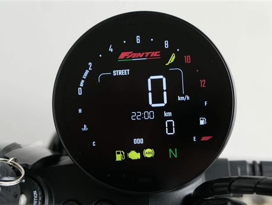 Přední 41mm USD vidlice FANTIC FRS má zdvih 150 mm, zadní odpružení se stejným zdvihem je také tovární FANTIC FSR. U verze Scrambler je nastavitelný odskok u zadního tlumiče.