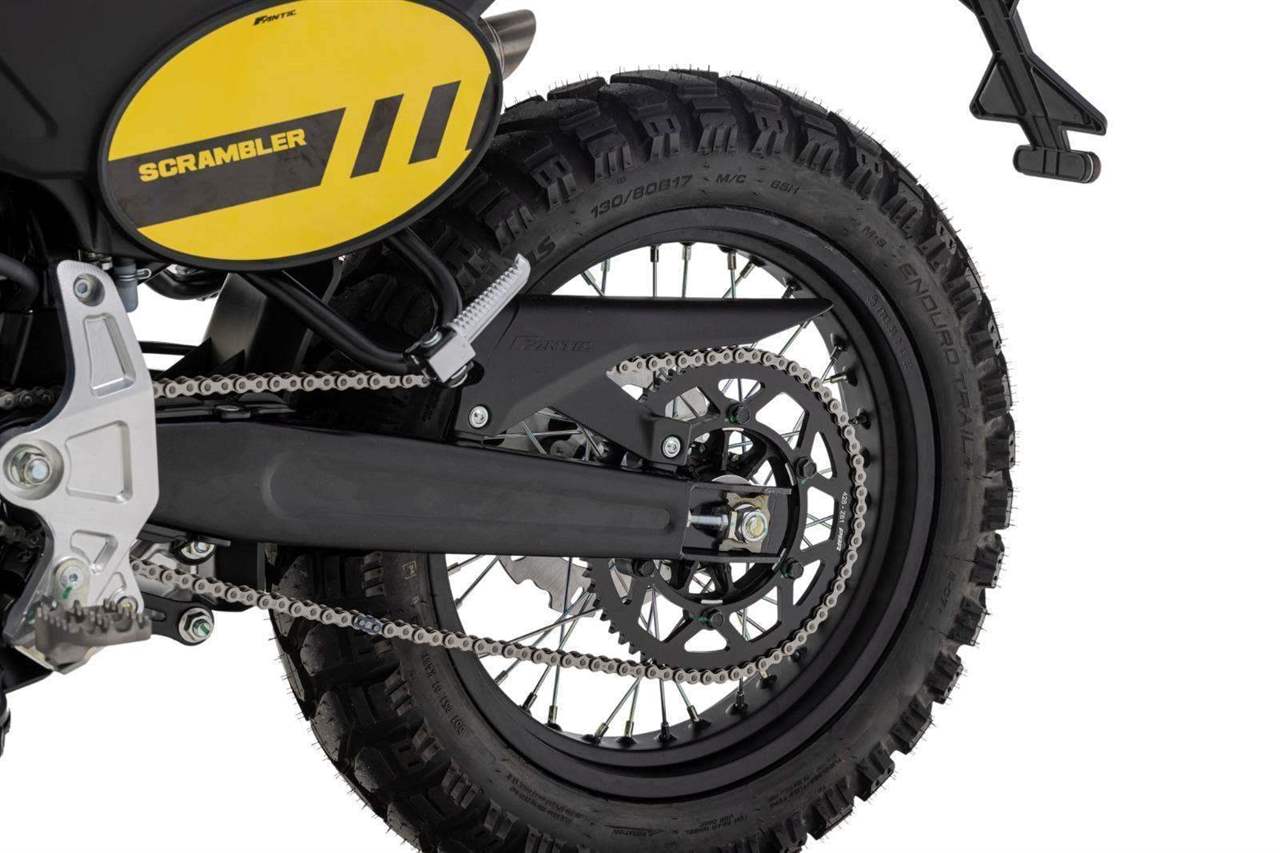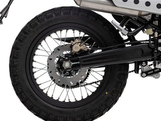 Drátová kola s pneumatikami Pirelli Scorpion Rally (110/80-19 vpředu a 130/80-17 vzadu) dodávají motocyklu autentický scrambler vzhled. 320 mm přední a 230 mm zadní brzdový kotouč a volitelné náklonové ABS Continental zaručuje skvělou bezpečnost v každé situaci.