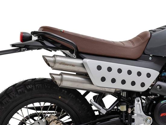 Přední 41mm USD vidlice FANTIC FRS má zdvih 150 mm, zadní odpružení se stejným zdvihem je také tovární FANTIC FSR. U verze Scrambler je nastavitelný odskok u zadního tlumiče.