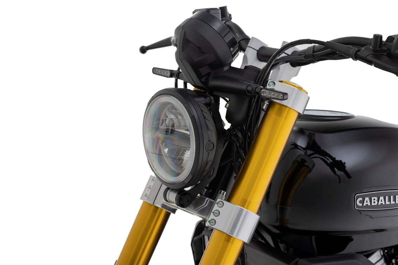 Luxusně lakovaná palivová nádrž a barevně sladěná boční závodní tabulka inspirovaná ikonickým Fantic Motor Caballero ze 70. let. Široká řídítka s off-roadovým tvarem, dvojitý výfukový systém, mnoho CNC detailů, designová přední a zadní LED světla, maximum součástí zakázkově vyráběných v Itálii, to vše dělá z Caballera neodolatelnou hračku pro jezdce všech generací.
