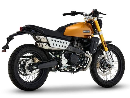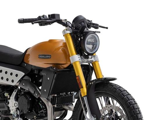 Luxusně lakovaná palivová nádrž a kontrastní boční závodní tabulka inspirovaná ikonickým Fantic Motor Caballero ze 70. let. Široká řídítka s off-roadovým tvarem, dvojitý výfukový systém od Arrow, mnoho CNC detailů, designová přední a zadní LED světla, maximum součástí zakázkově vyráběných v Itálii, to vše dělá z Caballera neodolatelnou hračku pro jezdce všech generací.