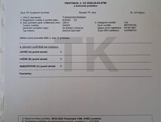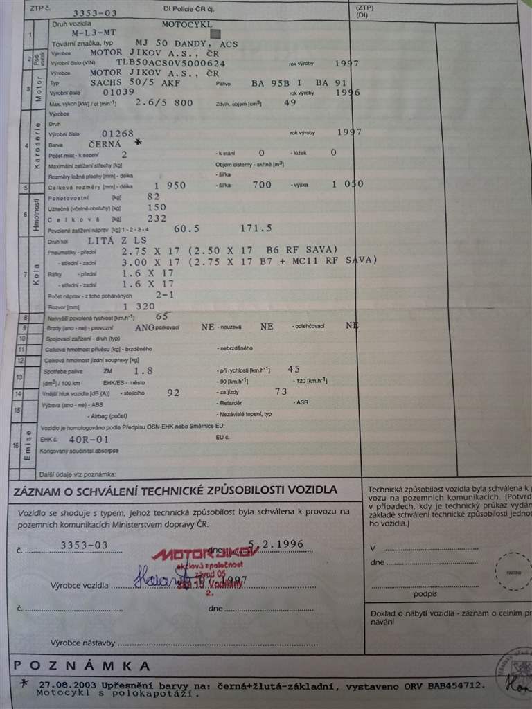 Vložit nový inzerát Upravit Motocykly na prodej Jawa 50 Dandy Přehled Upravit 50 000 Kč Jawa 50 Dandy 1996 Jedná se o model se 7 žebrovým válcem z první výroby motorka ma nový píst nový kroužky ložisko plus výměna oleje a filtrů motorka se momentálně pomalu zajíždí je to spíše moto na rekreační projetí k moto dvě sady klíčů servisní knížka plus veškeré dokumenty i s první kupní smlouvou při solidním a rychlém jednání sleva. nově přidáno Objem: 50 cm3 Vyrobeno: 1996 Najeto: neuvedeno Výkon: neuvedeno STK: 2027 Původ: CZ Výrobce: Jawa Model: 50 Dandy Zařazení: silniční, veterán Zobrazeno: 18×, servisní knížka Lokalita: Chbany , Ústecký kraj Vloženo: 6.4.2026 Typ inzerátu: bezplatná inzerce Vložit do schránky Nahlásit závadný inzerát Sdílet inzerát Prodávající Telefon: 723 279 260 Odpovedět na inzerát Podobné inzeráty Jawa Jaweta 551 1959 Kraj Vysočina 21 000 Kč Jawa 50/20 1977 Královéhradecký 9 000 Kč Jawa 350 Californian 1972 Středočeský 329 000 Kč Jawa Jawa 250/592 Panelka 1973 Ústecký 75 000 Kč Jawa 350/639 1991 Moravskoslezský 69 000 Kč Jawa 300 CL Olomoucký 149 900 Kč Jawa 350/354 Kývačka 1958 Liberecký dohodou