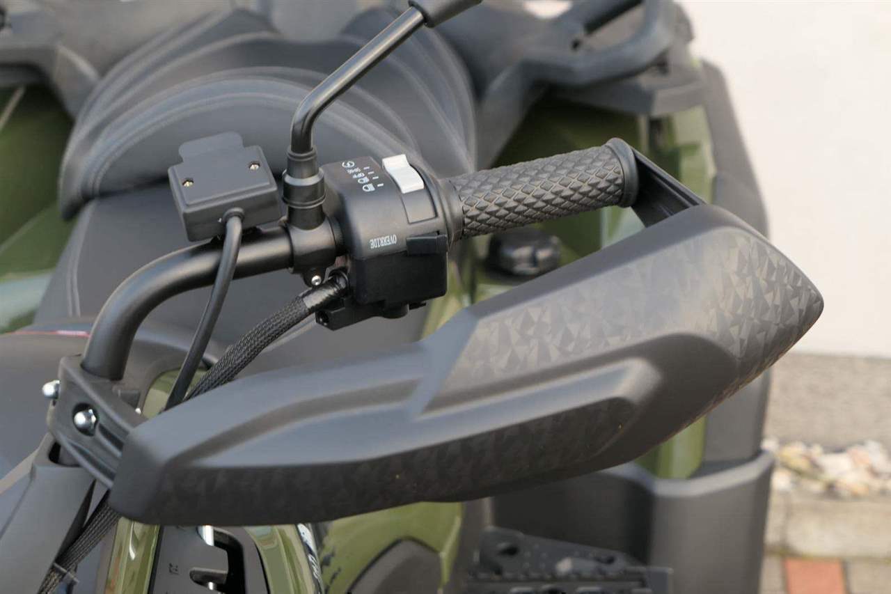 EPS (elektrický posilovač řízení), 12″ alu kola, 3x 12V zásuvka (zapalovač + 2x USB), zámek řízení integrovaný ve spínací skříňce, voděodolný kastlík v předním blatníku a v zadní části čtyřkolky, homologované tažné zařízení s el. zásuvkou na neskutečných 800 kg, silný elektrický naviják 3000 lbs, kryty rukou, ochranné lemy blatníků, přídavné sedadlo s opěradlem a madly pro spolujezdce (u prodloužené verze MAX), přepínání pohonu 2×4/4×4 + uzávěrka předního diferenciálu, přední ochranný rám s plastovým krytím, přední i zadní nosič s možností naložit na ně až 80 kg nákladu, full LED dynamické přední a zadní směrovky integrované do předních i zadních světel