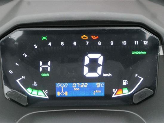 Za řidítkama si budeš připadat jako v kokpitu. Na digitálním displeji krásně uvidíš veškerý info o mý kondici i stylu tvý jízdy. Pomocí blů-tůčka navíc vcukuletu spáruješ telefon, a tak budeš mít na očích echo o příchozích hovorech.