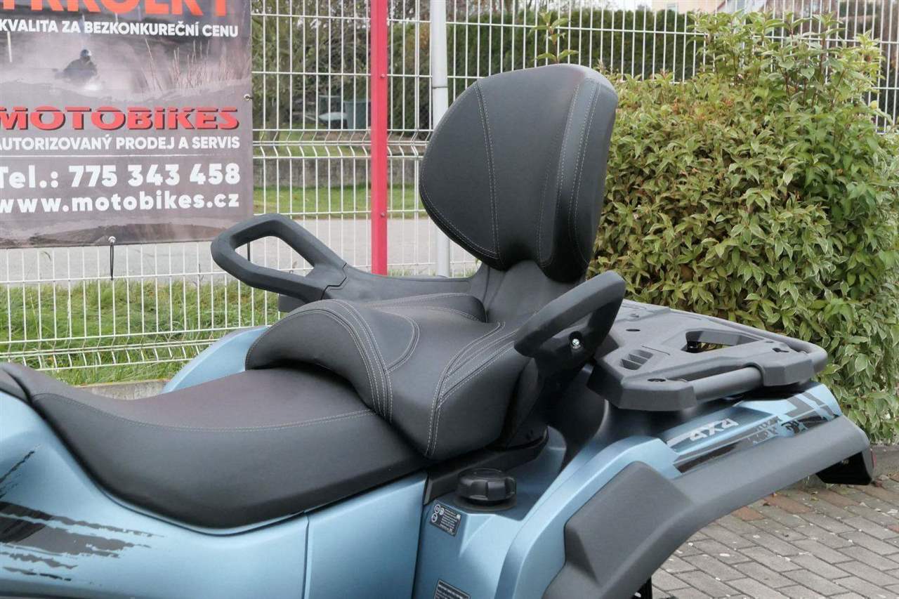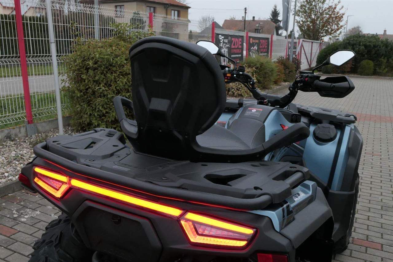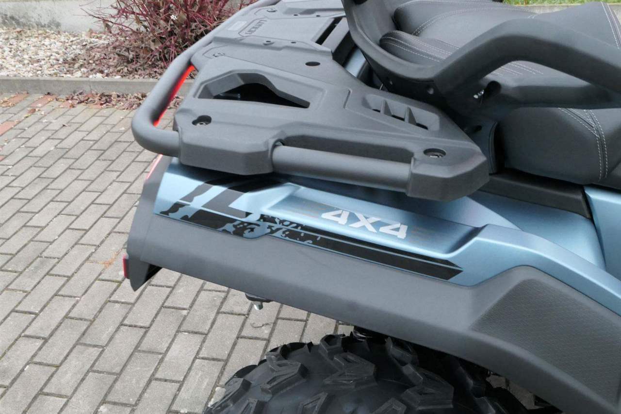 EPS (elektrický posilovač řízení), 12″ alu kola, 3x 12V zásuvka (zapalovač + 2x USB), zámek řízení integrovaný ve spínací skříňce, voděodolný kastlík v předním blatníku a v zadní části čtyřkolky, homologované tažné zařízení s el. zásuvkou na neskutečných 800 kg, silný elektrický naviják 3000 lbs, kryty rukou, ochranné lemy blatníků, přídavné sedadlo s opěradlem a madly pro spolujezdce (u prodloužené verze MAX), přepínání pohonu 2×4/4×4 + uzávěrka předního diferenciálu, přední ochranný rám s plastovým krytím, přední i zadní nosič s možností naložit na ně až 80 kg nákladu, full LED dynamické přední a zadní směrovky integrované do předních i zadních světel