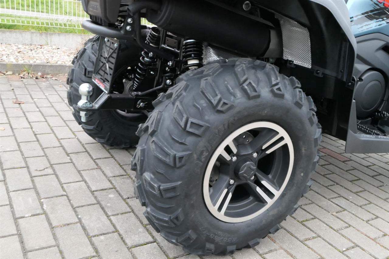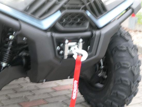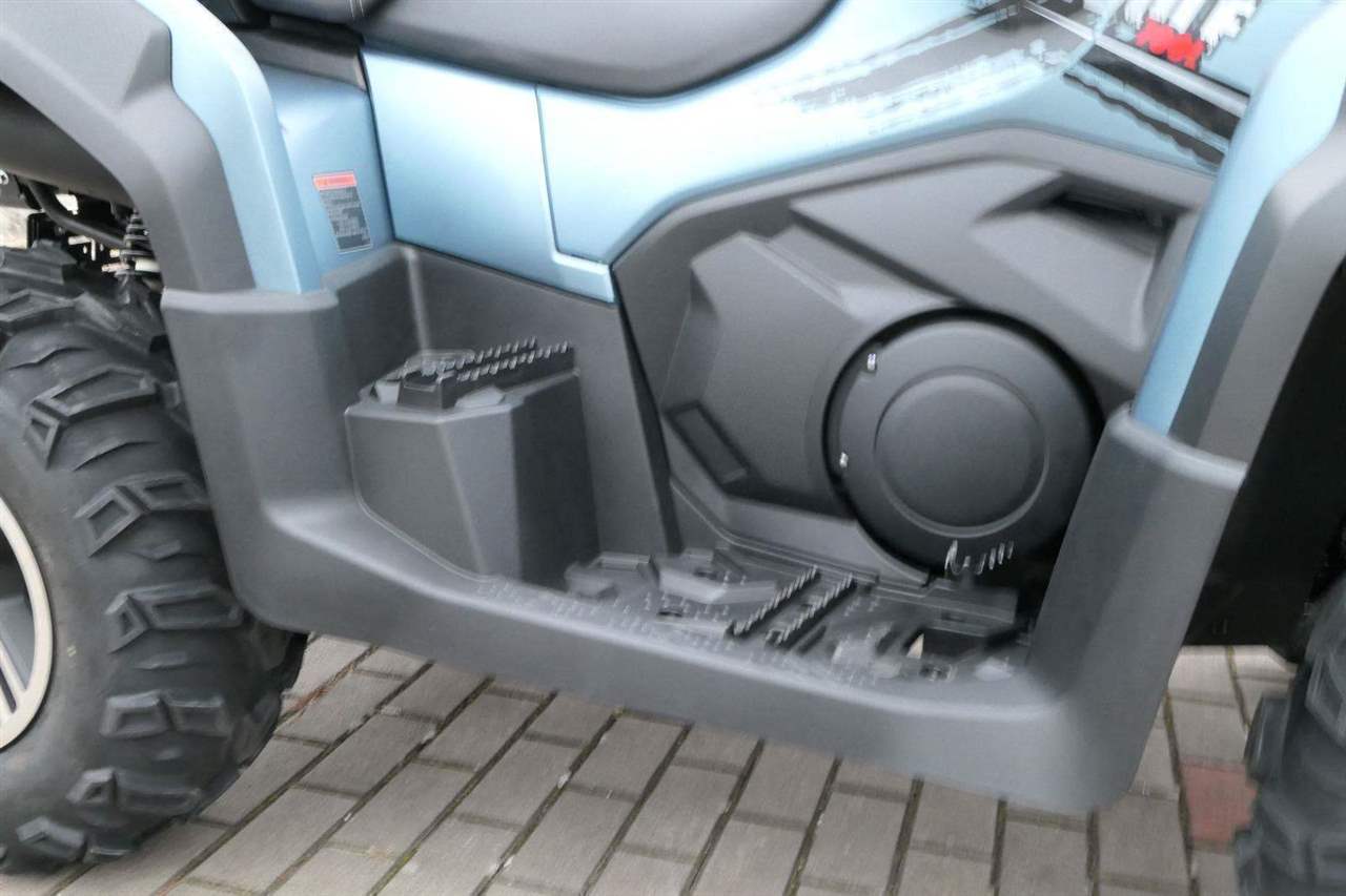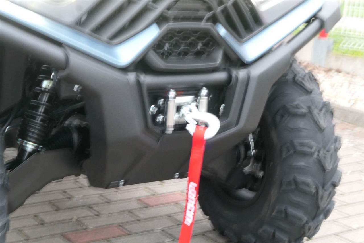 EPS (elektrický posilovač řízení), 12″ alu kola, 3x 12V zásuvka (zapalovač + 2x USB), zámek řízení integrovaný ve spínací skříňce, voděodolný kastlík v předním blatníku a v zadní části čtyřkolky, homologované tažné zařízení s el. zásuvkou na neskutečných 800 kg, silný elektrický naviják 3000 lbs, kryty rukou, ochranné lemy blatníků, přídavné sedadlo s opěradlem a madly pro spolujezdce (u prodloužené verze MAX), přepínání pohonu 2×4/4×4 + uzávěrka předního diferenciálu, přední ochranný rám s plastovým krytím, přední i zadní nosič s možností naložit na ně až 80 kg nákladu, full LED dynamické přední a zadní směrovky integrované do předních i zadních světel