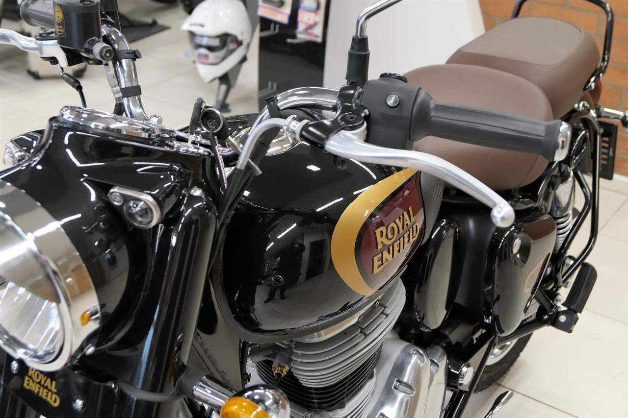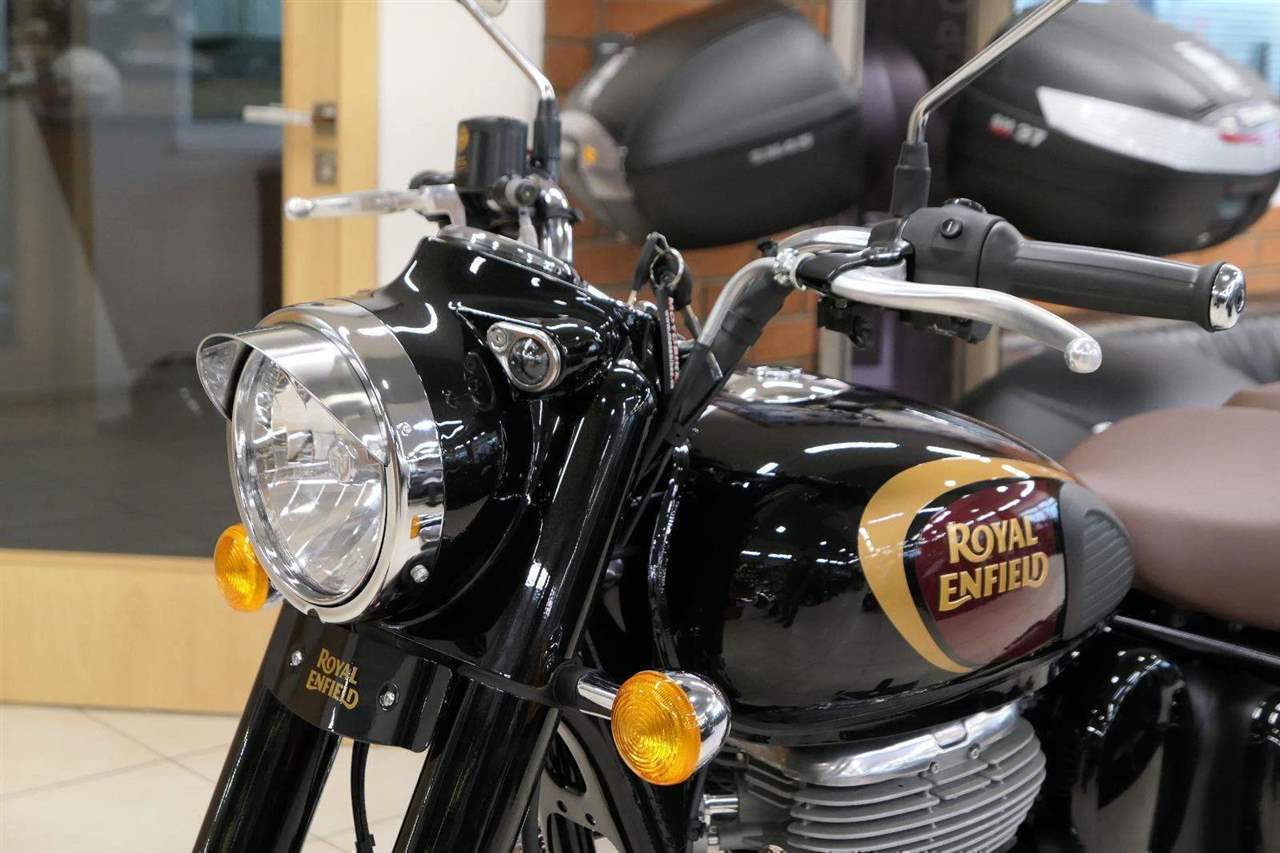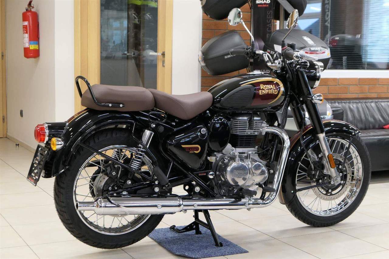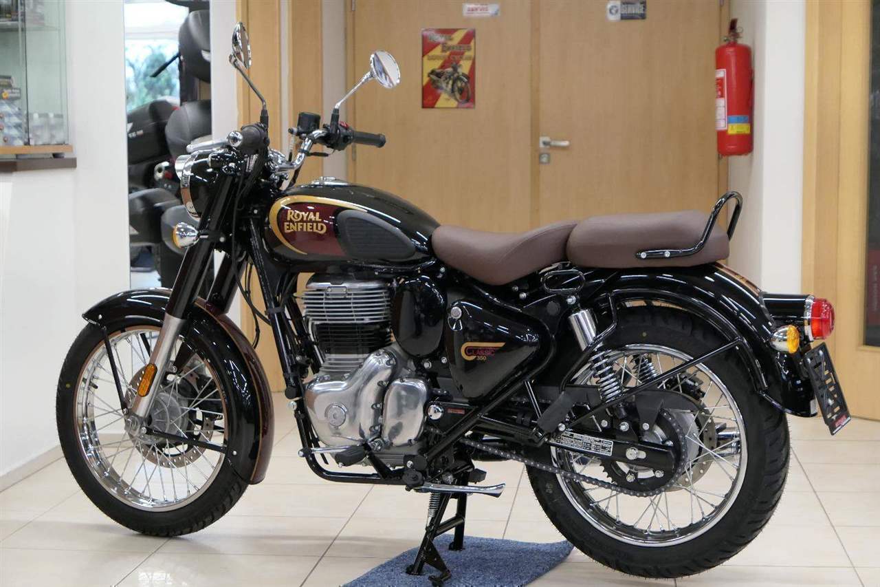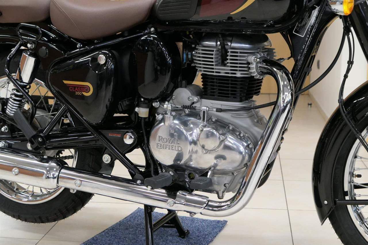 Zcela nový Classic 350 i nadále ztělesňuje tradice a řemeslo minulosti, protože je znovuzrozen na nové platformě J. Classic 350 z roku 2021, inspirovaný poválečným modelem G2, který se poprvé zrodil v roce 2008, nadále oslavuje nadčasovou estetiku prostřednictvím zaoblených blatníků a palivové nádrže ve tvaru kapky, charakteristického krytého světlometu, linií víka klikové skříně, jedinečných barev laku, charakteristického zvuku, který vyrazí z výfuku – to vše harmonizuje jako jeden celek s radostí z mistrovského díla, kterým je nadčasový Royal Enfield Classic. Elegantní, s lesklým nádechem, který zdobí výjimečnou konstrukci, vyzařuje bezkonkurenční krásu a kvalitu, která vydrží na věky.