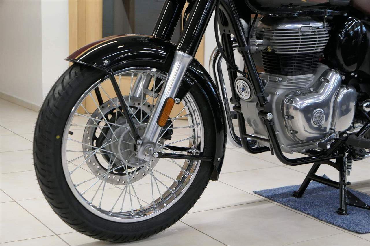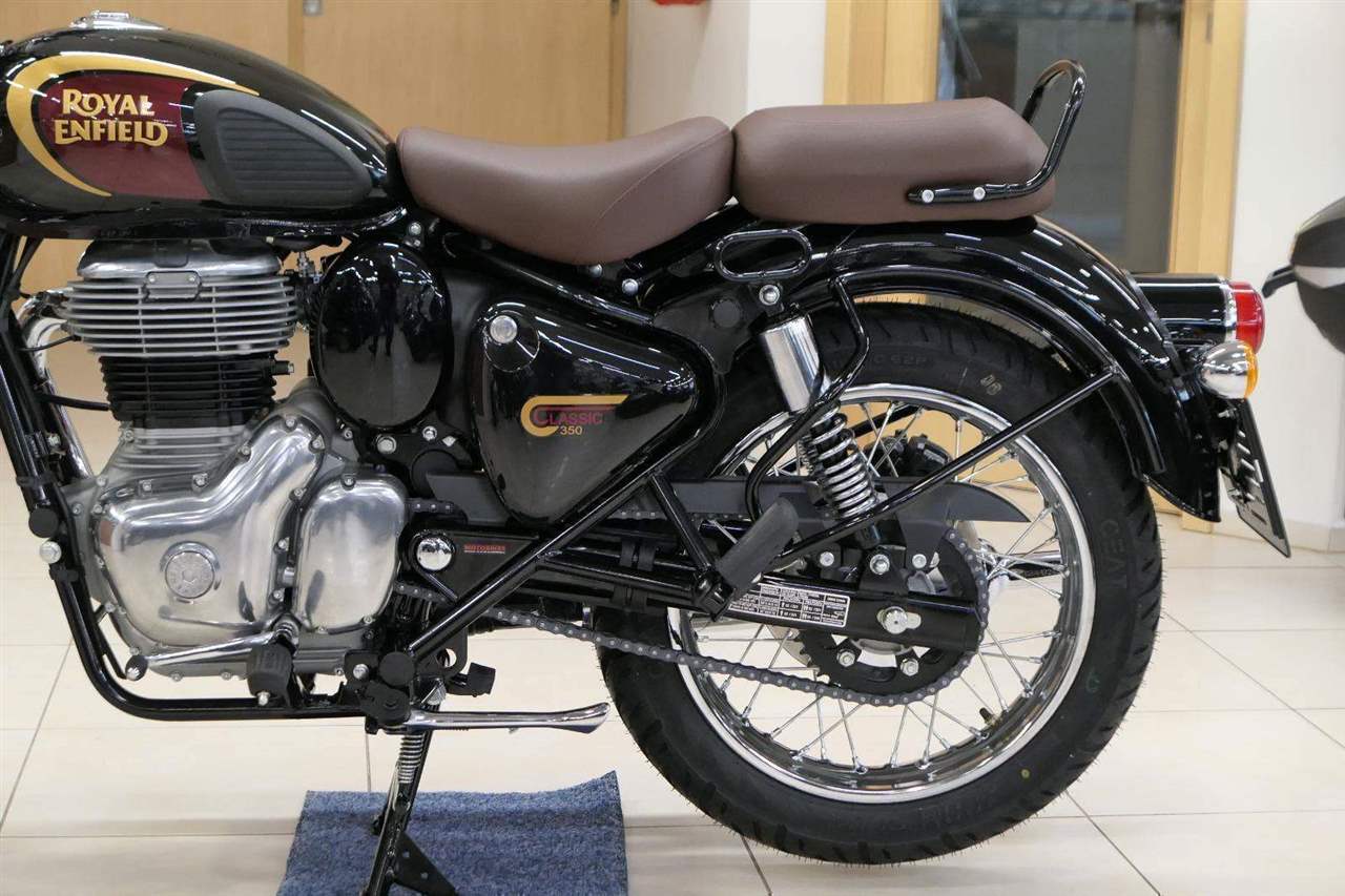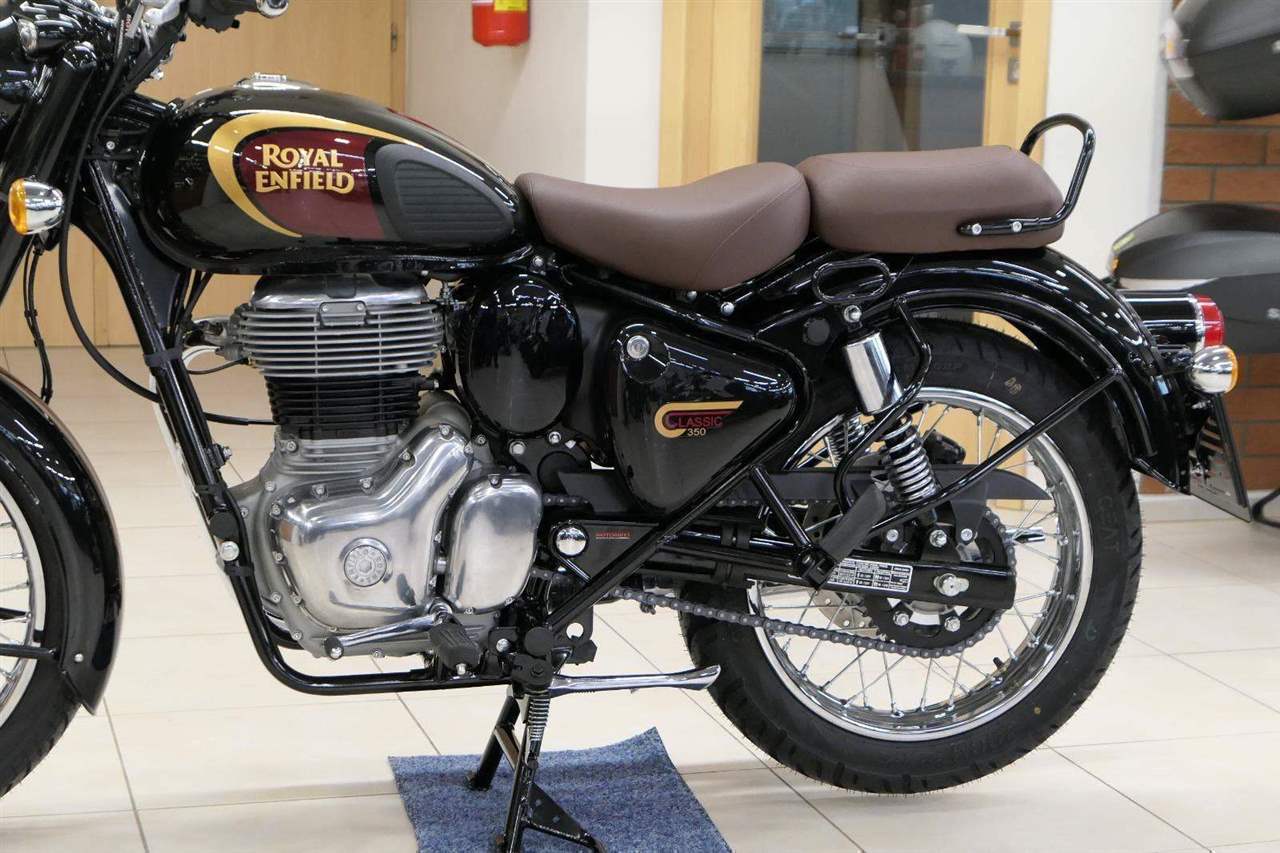 Ústředním prvkem nového Classic 350 je zcela nové srdce, které bije do jedinečného rytmu Royal Enfield. Ve spojení s novým rámem se dvěma spodními trubkami, který jezdí pevně a věrně, solidní a spolehlivou kvalitou konstrukce, je Classic vaším spojencem, ať už je váš cíl kdekoliv. Vzpřímená jízdní poloha dává jezdci Classicu vynikající vzhled na silnici, zatímco brzdy s větším průměrem zvyšují jeho brzdnou sílu. Ale silnější neznamená jen schopný a odolný, Classic je obdařen také pohodlím, s vylepšeným širším sedlem, které zpříjemňuje jízdu.