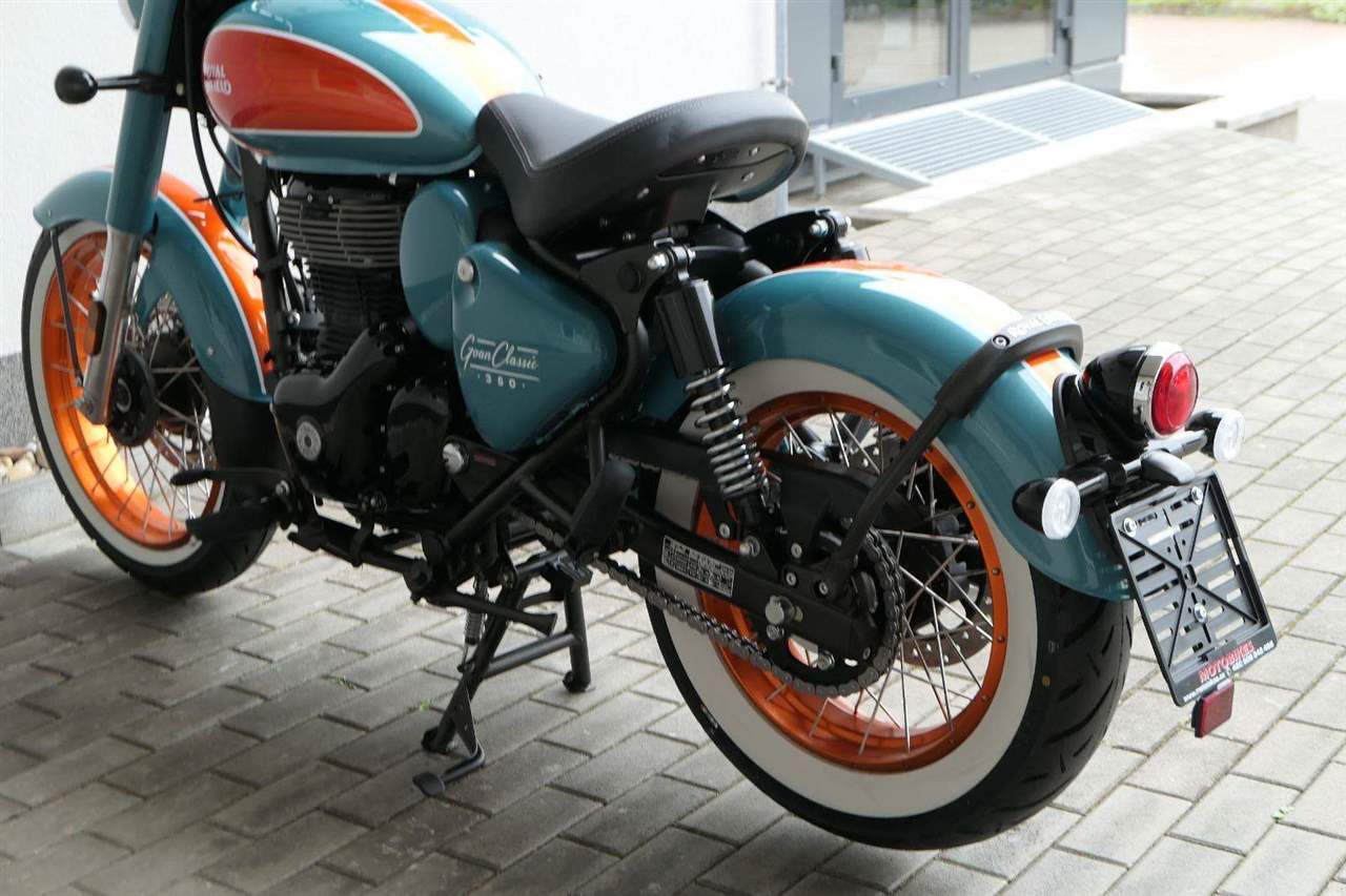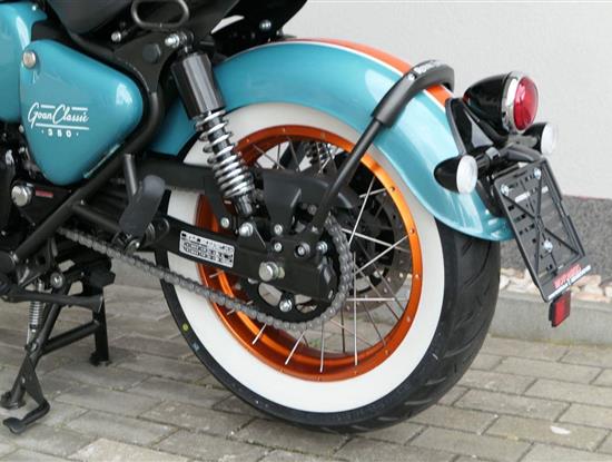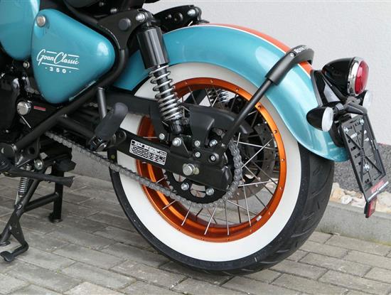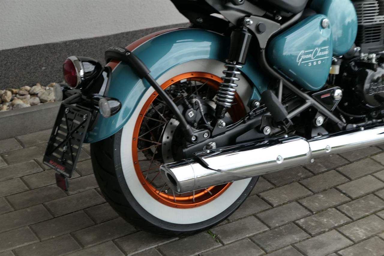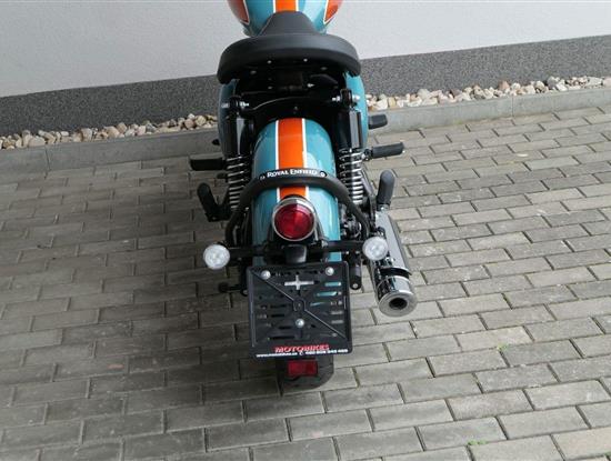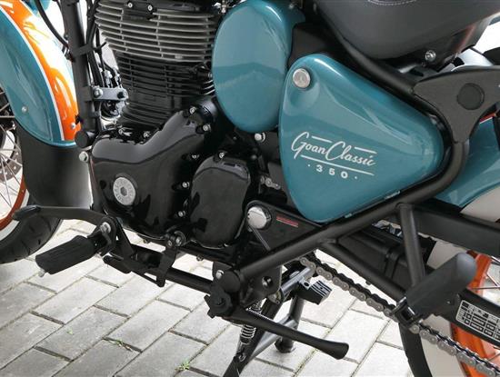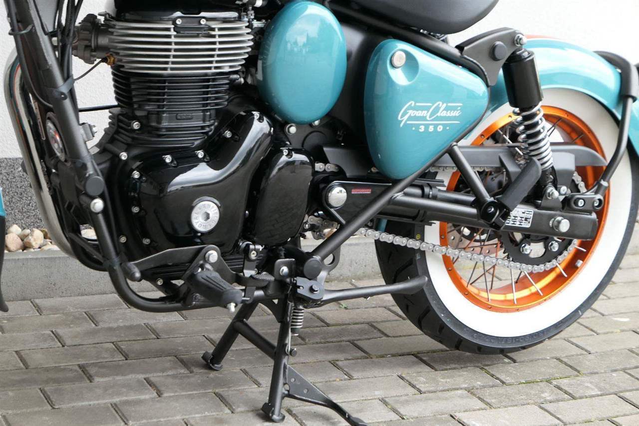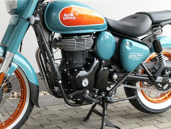 - Osvědčený motor 350 cm³ (J-platforma) – kultivovaný chod, spolehlivost a typický zvuk Royal Enfield