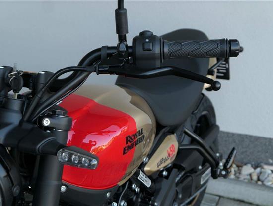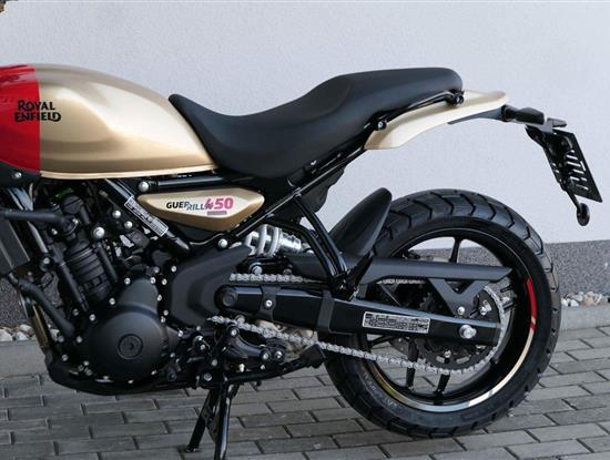 Royal Enfield Guerrilla 450 sdílí motor a technický základ s cestovním endurem Himalayan 450, stojí ale na malých silničních kolech a místo cestování míří na každodenní dojíždění, i na radovánky okolo komína.