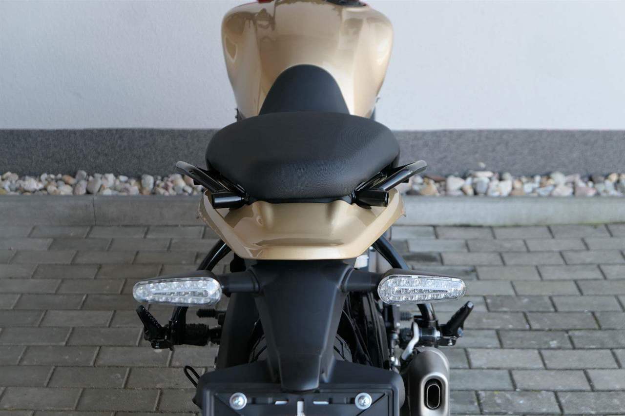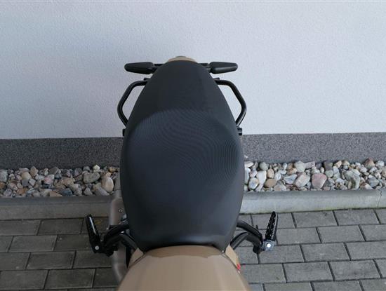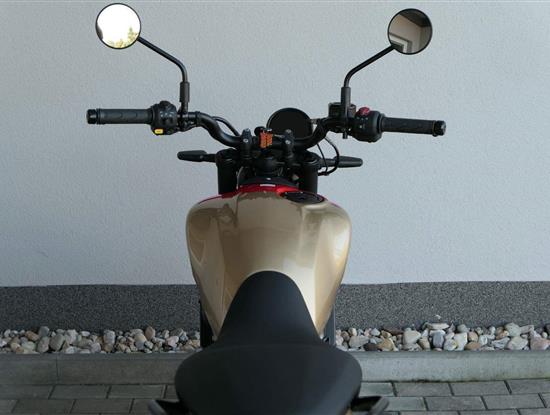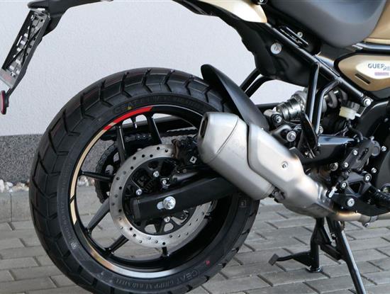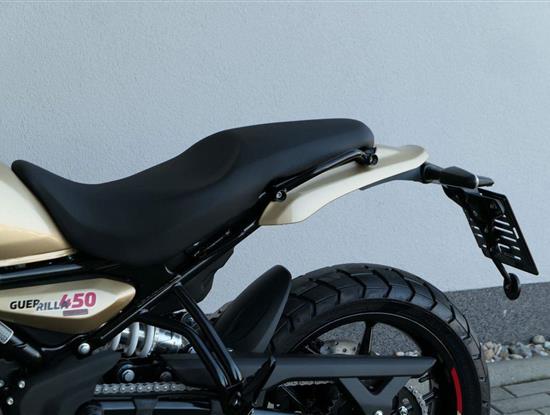 Kola jsou sedmnáctipalcová a Guerilla se chlubí přístupnou výškou sedla 780 milimetrů, stejně jako příjemnou pohotovostní hmotností 184 kilogramů. S ohledem na výkon a hmotnost jsou celkem dostačující i brzdy – vpředu jeden kotouč 310 milimetrů s dvoupístkovým brzdičem, vzadu 270 milimetrů s jednopístem. Do nádrže se vejde jenom skromných 11 litrů, na druhou stranu výrobce uvádí i skromnou tabulkovou spotřebu 3,39 litru na 100 kilometrů.
