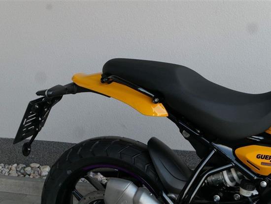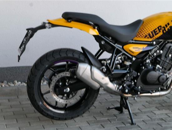 Kola jsou sedmnáctipalcová a Guerilla se chlubí přístupnou výškou sedla 780 milimetrů, stejně jako příjemnou pohotovostní hmotností 184 kilogramů. S ohledem na výkon a hmotnost jsou celkem dostačující i brzdy – vpředu jeden kotouč 310 milimetrů s dvoupístkovým brzdičem, vzadu 270 milimetrů s jednopístem. Do nádrže se vejde jenom skromných 11 litrů, na druhou stranu výrobce uvádí i skromnou tabulkovou spotřebu 3,39 litru na 100 kilometrů.