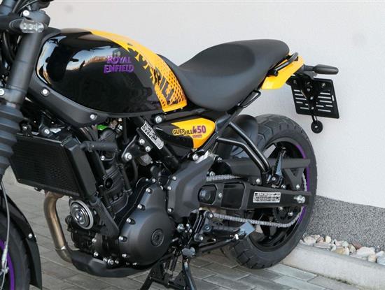 Z dosavadní modelové řady má Guerilla nejblíž Hunteru, působí ale moderněji a má i výrazně modernější techniku. Tak jako u aktuálního silnějšího Himalayanu 450 tvoří základ motorky trubkový páteřový rám, a v něm jako nosný prvek kapalinou chlazený jednoválec Sherpa o objemu 452 cm3. Relativně nový čtyřventil je mnohem výkonnější jednotkou než starší a menší vzduchem chlazené agregáty. Konkrétně nabídne rovných 40 koní v 8 000 otáčkách, a aby se to dobře pamatovalo tak i 40 Nm, které vrcholí v 5 500 otáčkách. Motor už má elektronický plyn a díky tomu i volitelné jízdní režimy – je ale poměrně jasné, který z dvojice „Eco“ a „Performance“ drtivá většina jezdců zvolí.