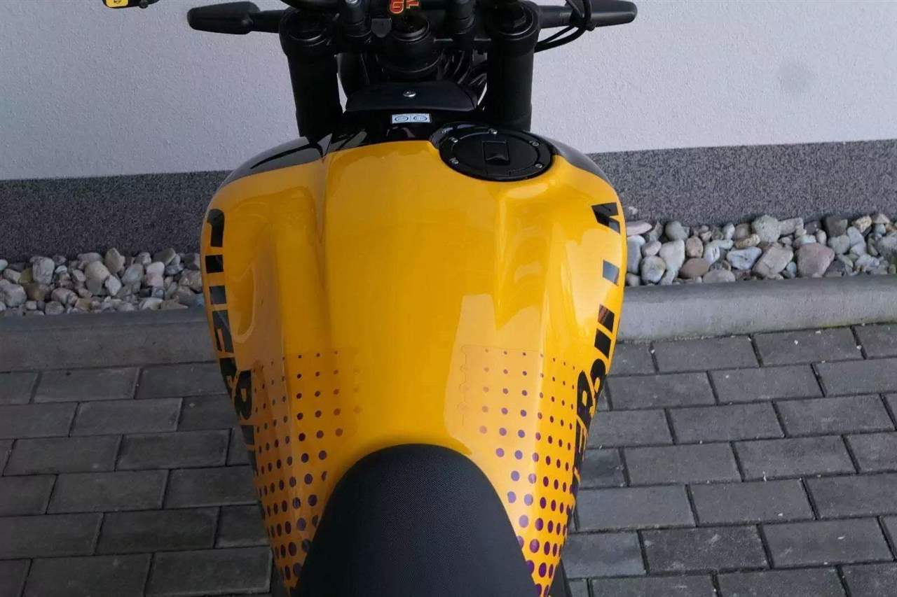 Celkově má Guerilla poměrně moderní tvary, Royal ale zdůrazňuje, že zde nejsou žádné nadbytečné plasty a serepetičky, a že jde v principu o jednoduchou a zábavnou motorku – což koneckonců spojuje všechny modely Royal Enfieldu. Opět je nutné pochválit výběr barev, který je vychytaný přesně tak, jak jsme u Royalu zvyklí. Z celkem pěti zbarvení je jenom jedno nudné, a sice jednolitá stříbrná Smoke Silver. Zbytek, tedy Brava Blue, Yellow Ribbon, Playa Black a Gold Dip zajímavě kombinují barevnou grafiku a ve třech případech dostanete i barevné ráfky.