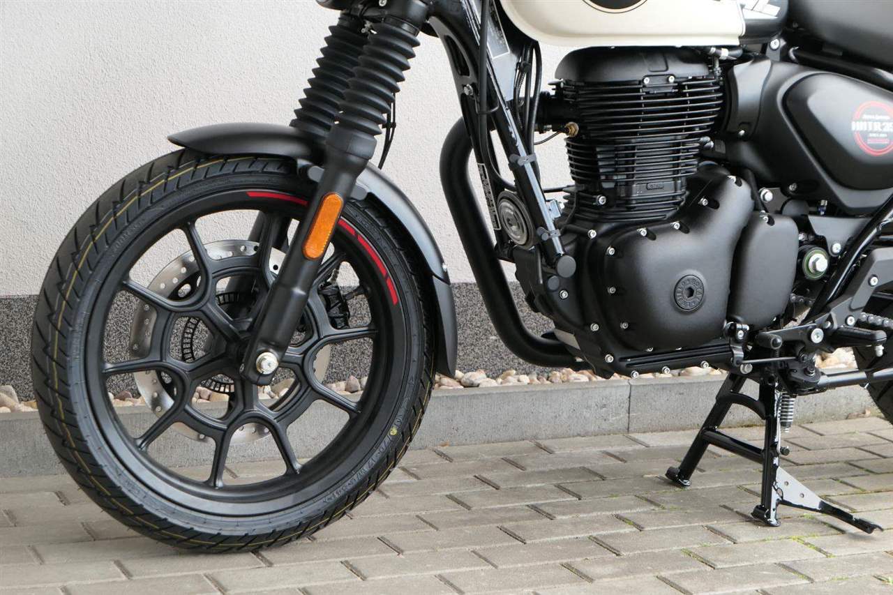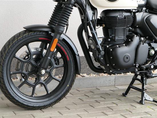 HNTR 350 je jediný sériově vyráběný model Royal Enfield vybavený 17" předním i zadním kolem s nápadnými litými ráfky. Bezdušové pneumatiky zvyšují praktičnost a pohodlí při každodenním provozu.