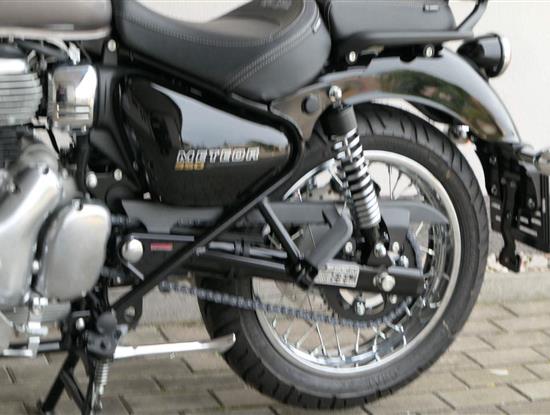 Díky vylepšenému nastavení podvozku, přístupné jízdní poloze, pokročilým brzdným schopnostem, vysoké specifikaci odpružení a rychlému přenosu výkonu je Meteor připraven posvítit si na svět cruiserů. Zcela nový podvozek je silnější, tužší a odolnější a je navržen pro přímou stabilitu, zatáčení a manévrovatelnost bez kompromisů v oblasti pohodlí.