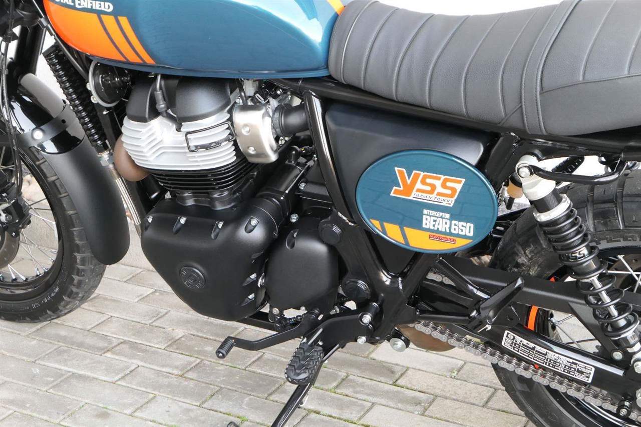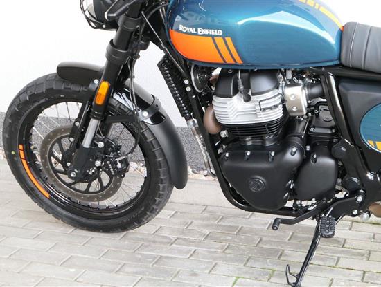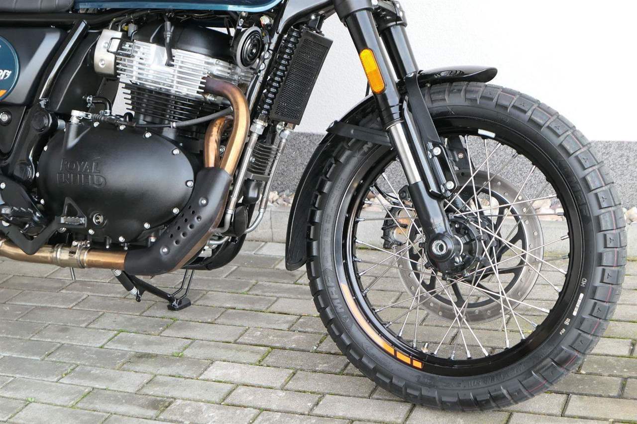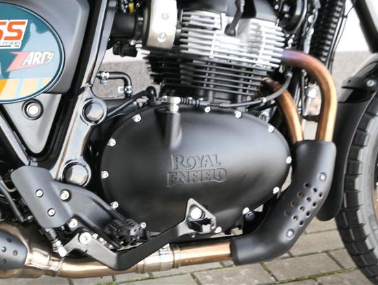 Napájení díky emocím a pohon zajišťuje ověřený paralelní dvouválec Royal Enfield o objemu 650 ccm. Je chráněn pláštěm ve vysoce odolné, prémiové černé úpravě, čímž získává robustní a účelné vzezření a je očividně dokonalým scramblerem.