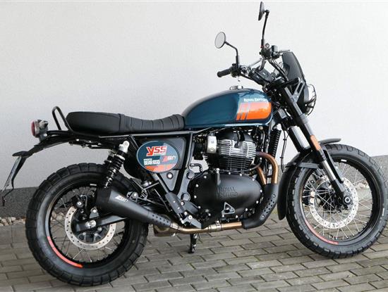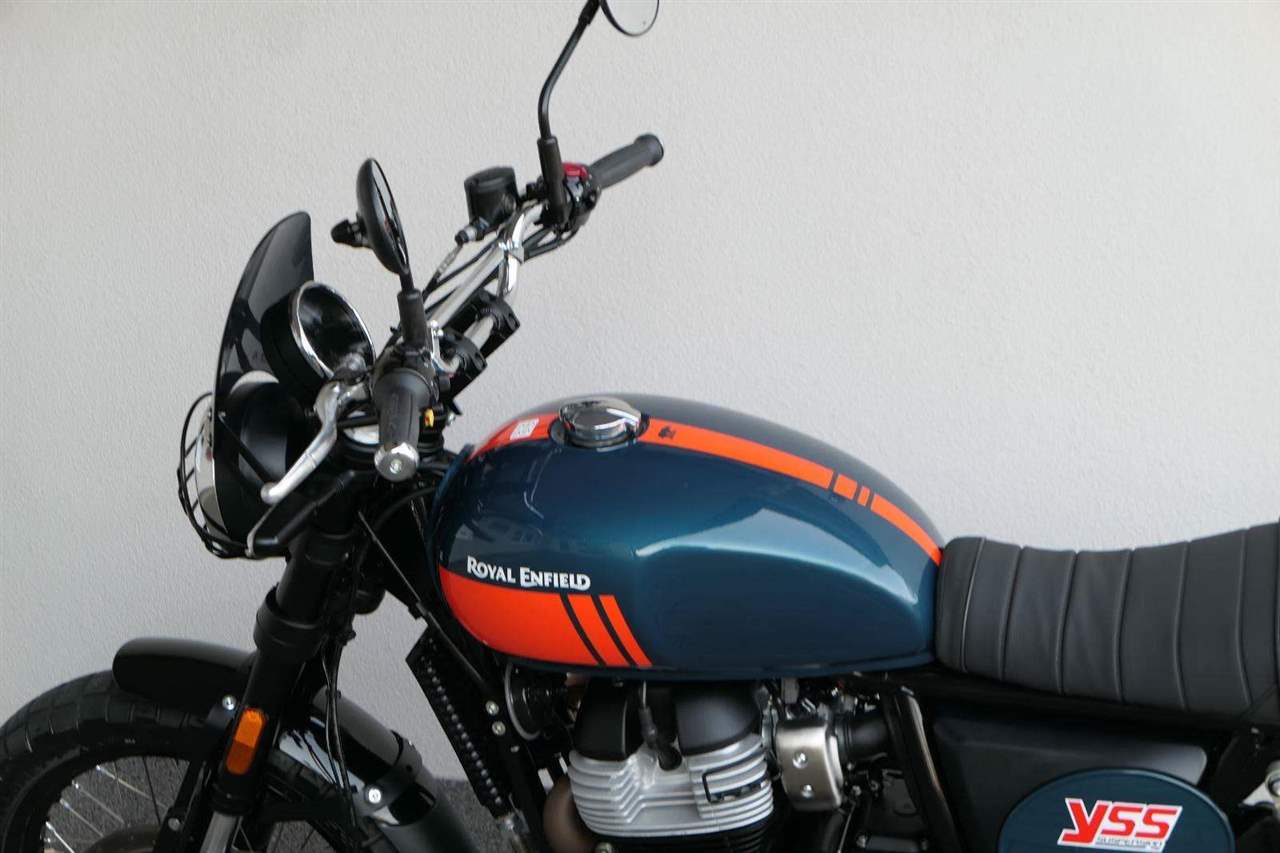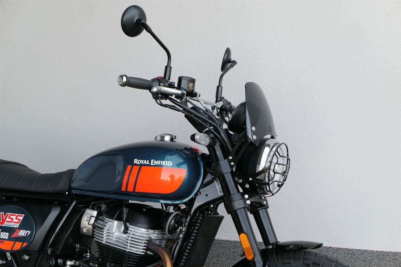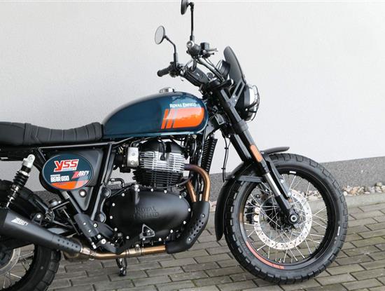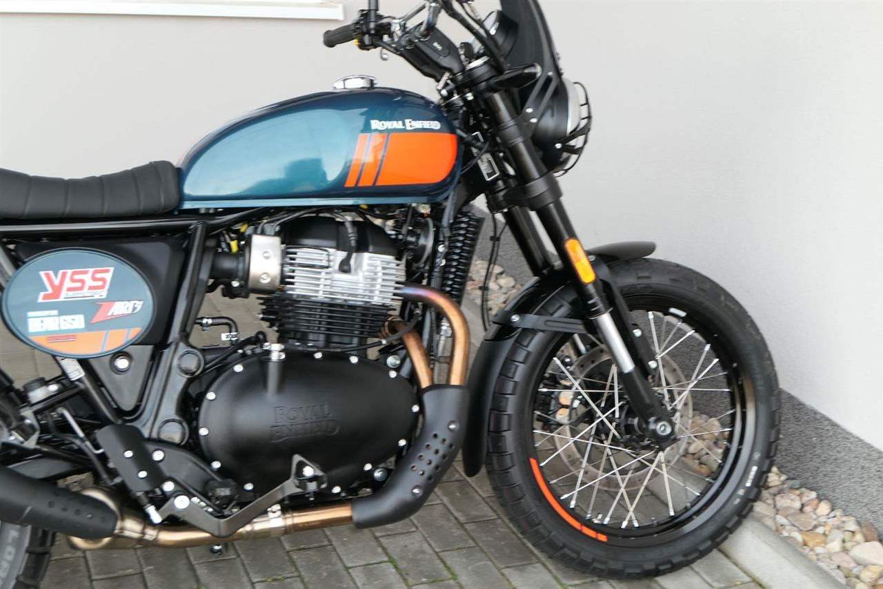 Napájení díky emocím a pohon zajišťuje ověřený paralelní dvouválec Royal Enfield o objemu 650 ccm. Je chráněn pláštěm ve vysoce odolné, prémiové černé úpravě, čímž získává robustní a účelné vzezření a je očividně dokonalým scramblerem.