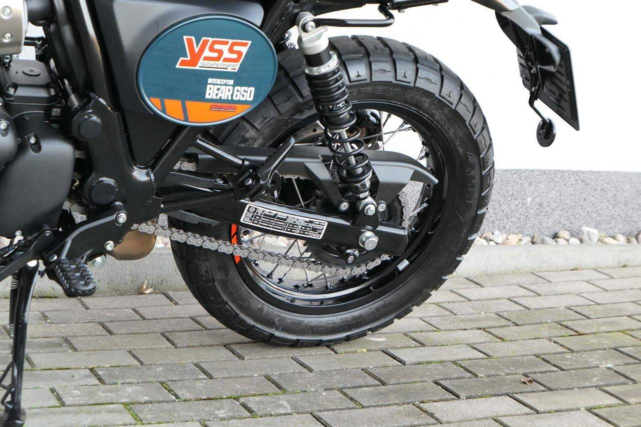 Silniční scramler s duší šedesátých let. Bear 650 ztělesňuje ducha šestnáctiletého nováčka, který se v roce 1960 seřadil vedle stovek spálených nadějí, všichni hladoví po vítězství v nejdivočejším závodě, jaký kdy kalifornská poušť znala - Big Bear Run.