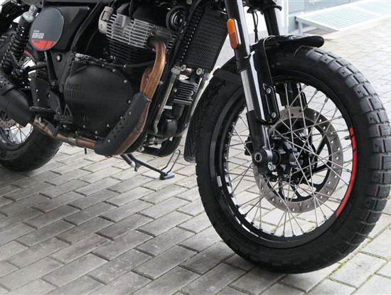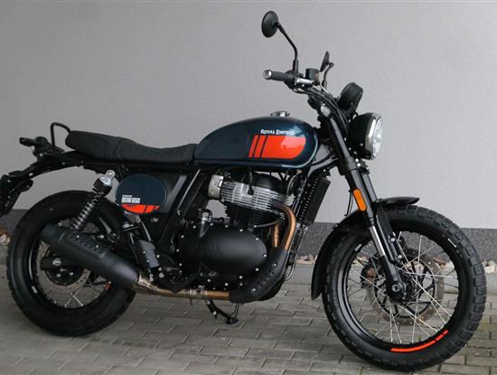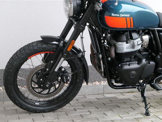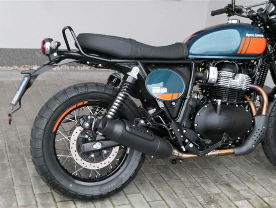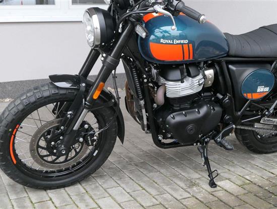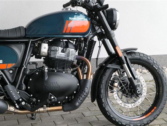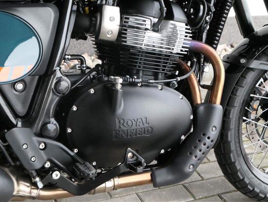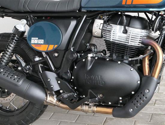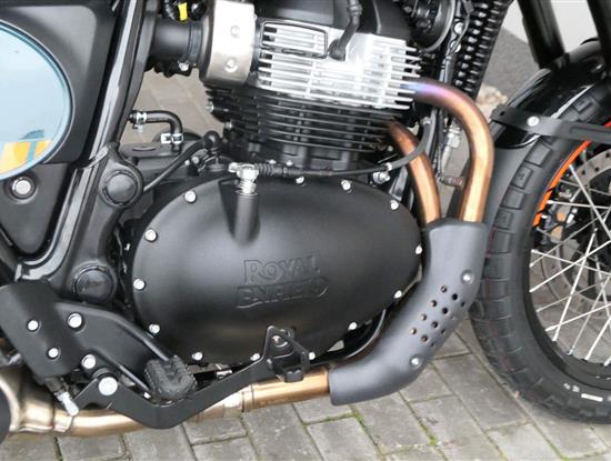 Napájení díky emocím a pohon zajišťuje ověřený paralelní dvouválec Royal Enfield o objemu 650 ccm. Je chráněn pláštěm ve vysoce odolné, prémiové černé úpravě, čímž získává robustní a účelné vzezření a je očividně dokonalým scramblerem.