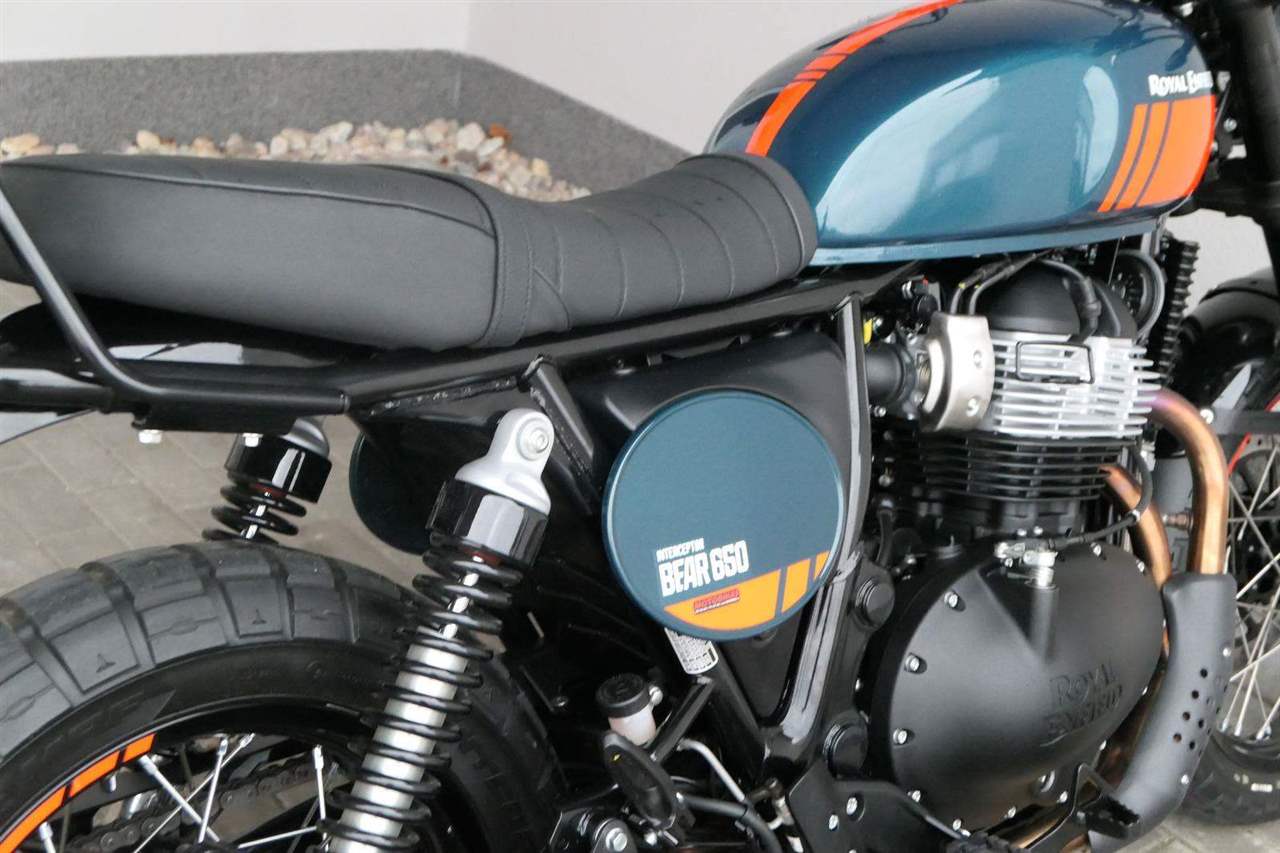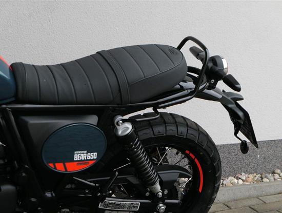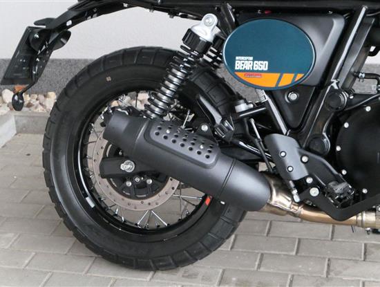 Silniční scramler s duší šedesátých let. Bear 650 ztělesňuje ducha šestnáctiletého nováčka, který se v roce 1960 seřadil vedle stovek spálených nadějí, všichni hladoví po vítězství v nejdivočejším závodě, jaký kdy kalifornská poušť znala - Big Bear Run.