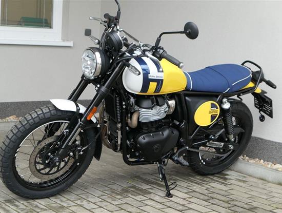 Silniční scramler s duší šedesátých let. Bear 650 ztělesňuje ducha šestnáctiletého nováčka, který se v roce 1960 seřadil vedle stovek spálených nadějí, všichni hladoví po vítězství v nejdivočejším závodě, jaký kdy kalifornská poušť znala - Big Bear Run.