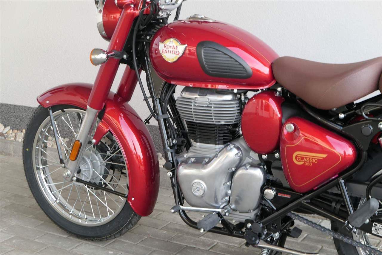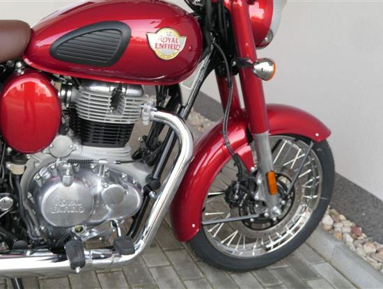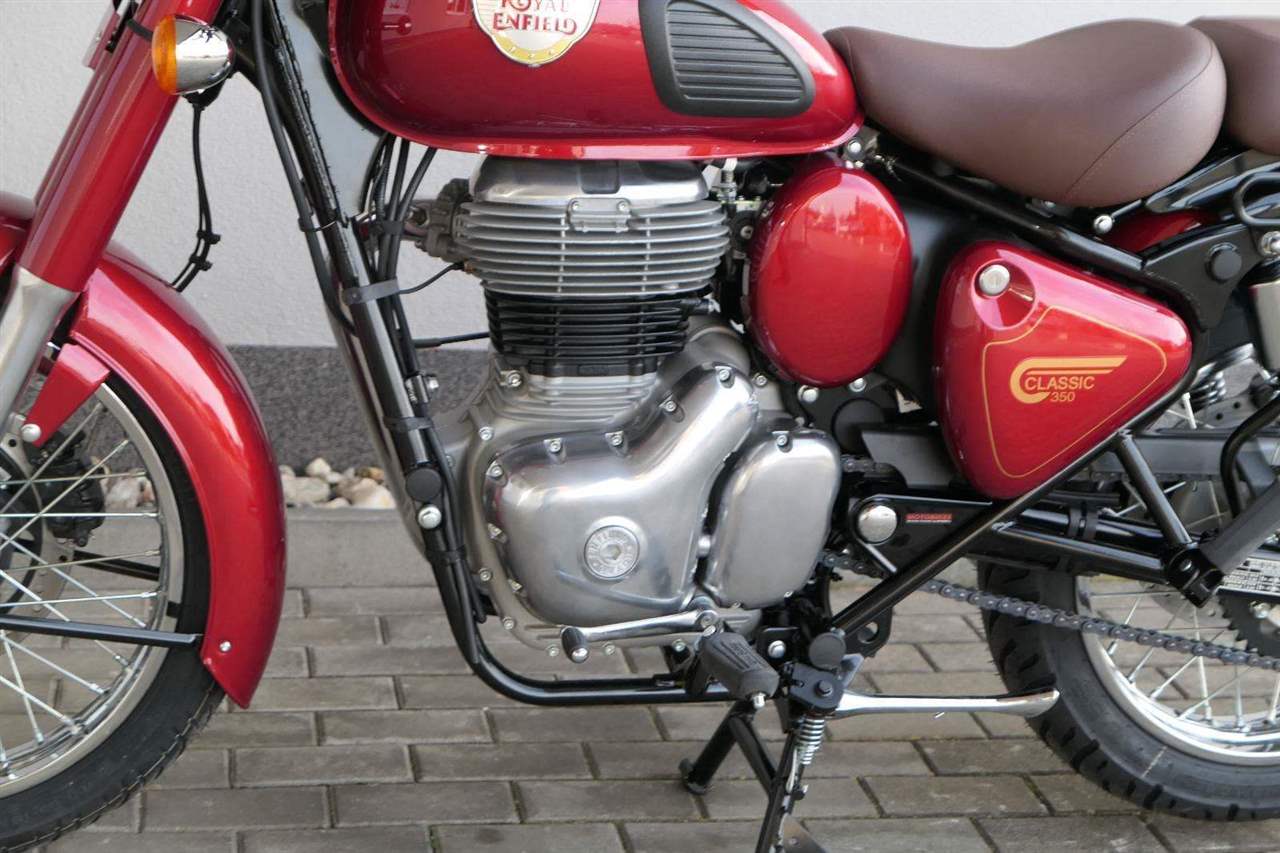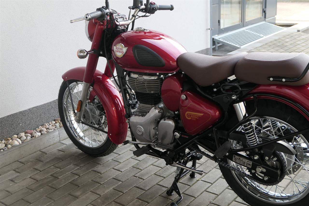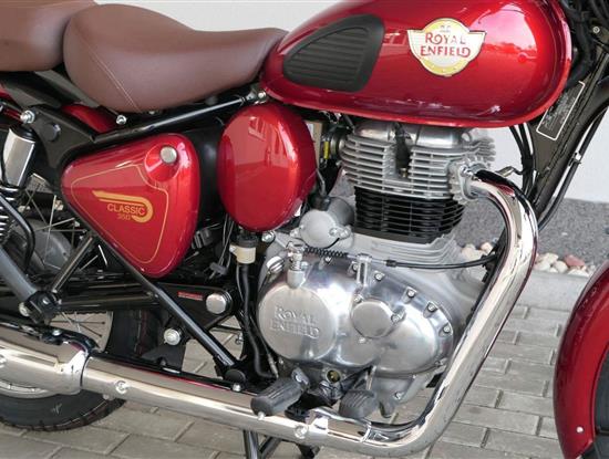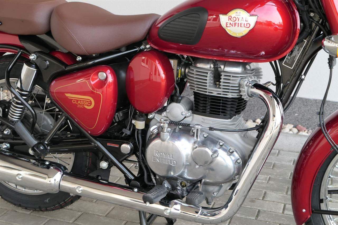 Ústředním prvkem nového Classic 350 je zcela nové srdce, které bije do jedinečného rytmu Royal Enfield. Ve spojení s novým rámem se dvěma spodními trubkami, který jezdí pevně a věrně, solidní a spolehlivou kvalitou konstrukce, je Classic vaším spojencem, ať už je váš cíl kdekoliv. Vzpřímená jízdní poloha dává jezdci Classicu vynikající vzhled na silnici, zatímco brzdy s větším průměrem zvyšují jeho brzdnou sílu. Ale silnější neznamená jen schopný a odolný, Classic je obdařen také pohodlím, s vylepšeným širším sedlem, které zpříjemňuje jízdu.