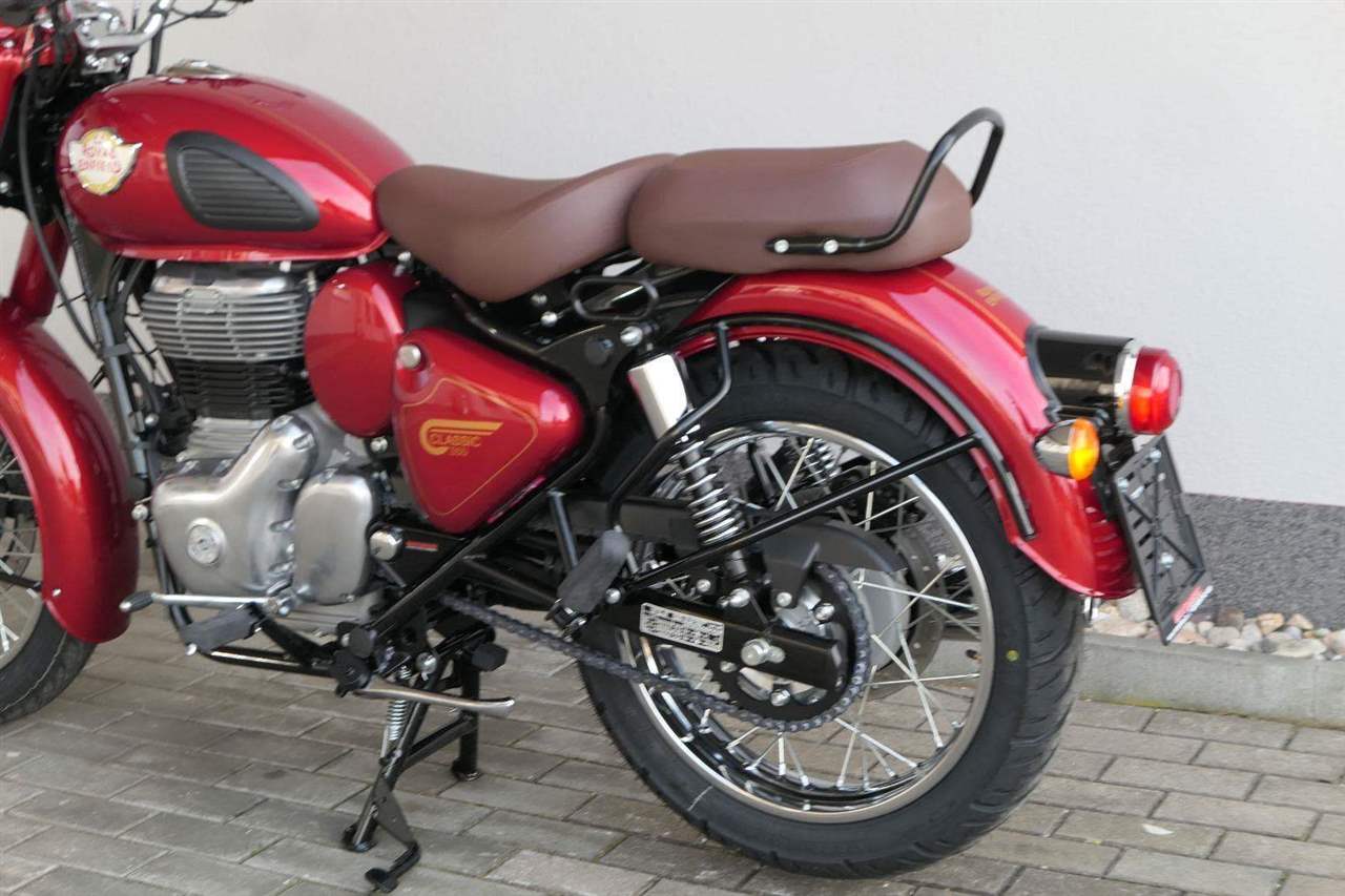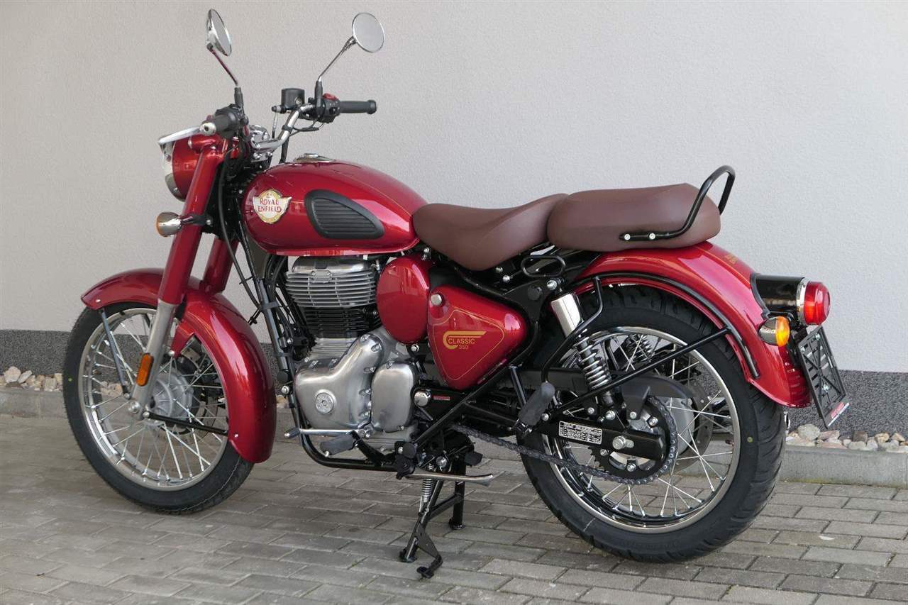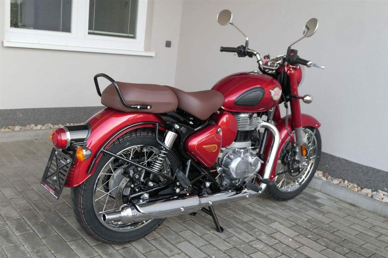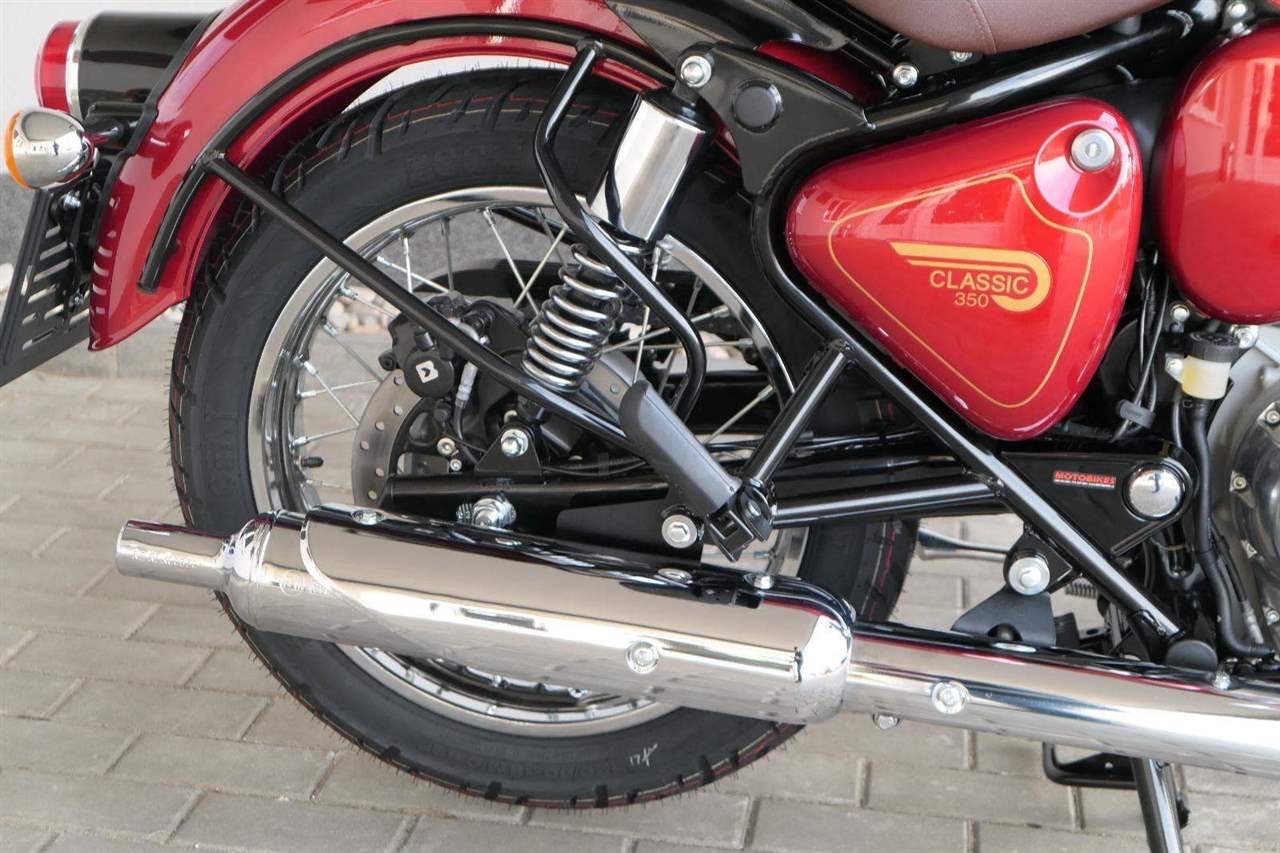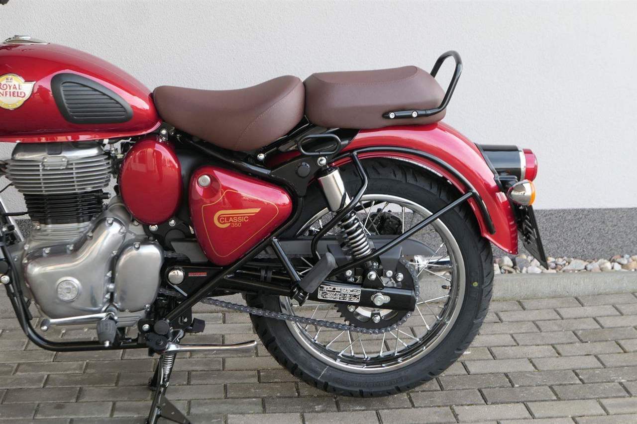 Ústředním prvkem nového Classic 350 je zcela nové srdce, které bije do jedinečného rytmu Royal Enfield. Ve spojení s novým rámem se dvěma spodními trubkami, který jezdí pevně a věrně, solidní a spolehlivou kvalitou konstrukce, je Classic vaším spojencem, ať už je váš cíl kdekoliv. Vzpřímená jízdní poloha dává jezdci Classicu vynikající vzhled na silnici, zatímco brzdy s větším průměrem zvyšují jeho brzdnou sílu. Ale silnější neznamená jen schopný a odolný, Classic je obdařen také pohodlím, s vylepšeným širším sedlem, které zpříjemňuje jízdu.