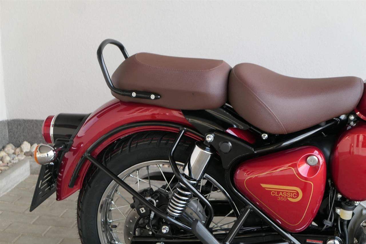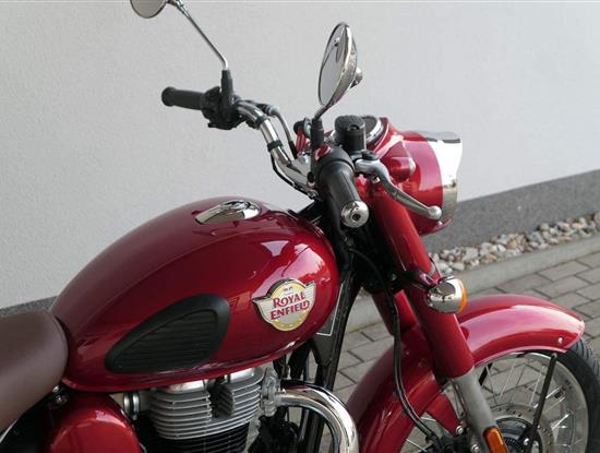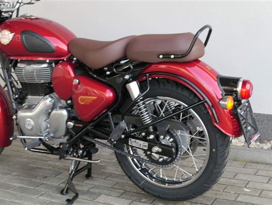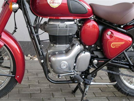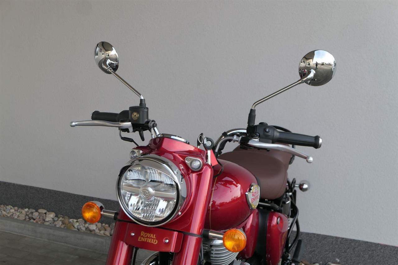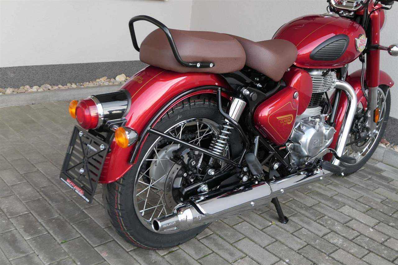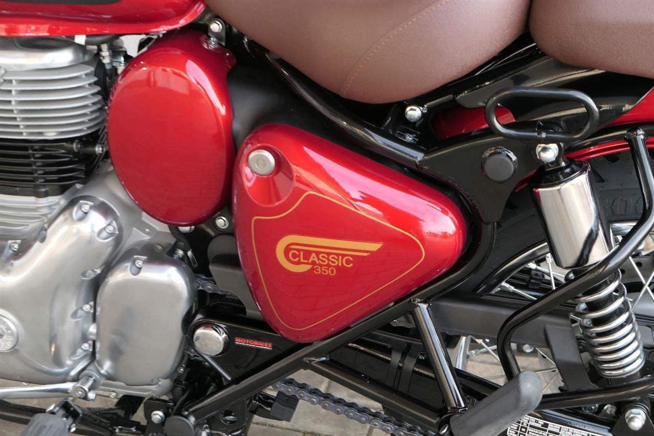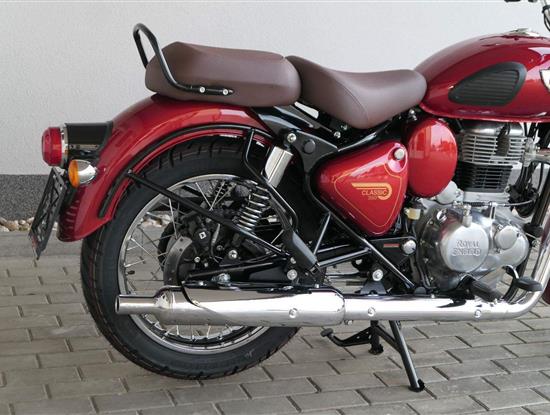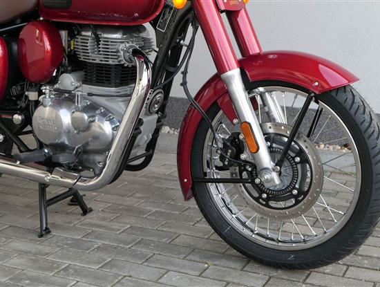 Ústředním prvkem nového Classic 350 je zcela nové srdce, které bije do jedinečného rytmu Royal Enfield. Ve spojení s novým rámem se dvěma spodními trubkami, který jezdí pevně a věrně, solidní a spolehlivou kvalitou konstrukce, je Classic vaším spojencem, ať už je váš cíl kdekoliv. Vzpřímená jízdní poloha dává jezdci Classicu vynikající vzhled na silnici, zatímco brzdy s větším průměrem zvyšují jeho brzdnou sílu. Ale silnější neznamená jen schopný a odolný, Classic je obdařen také pohodlím, s vylepšeným širším sedlem, které zpříjemňuje jízdu.