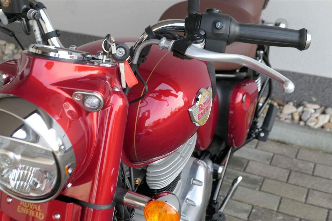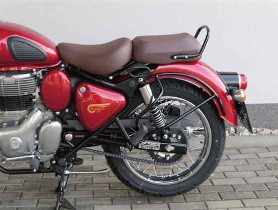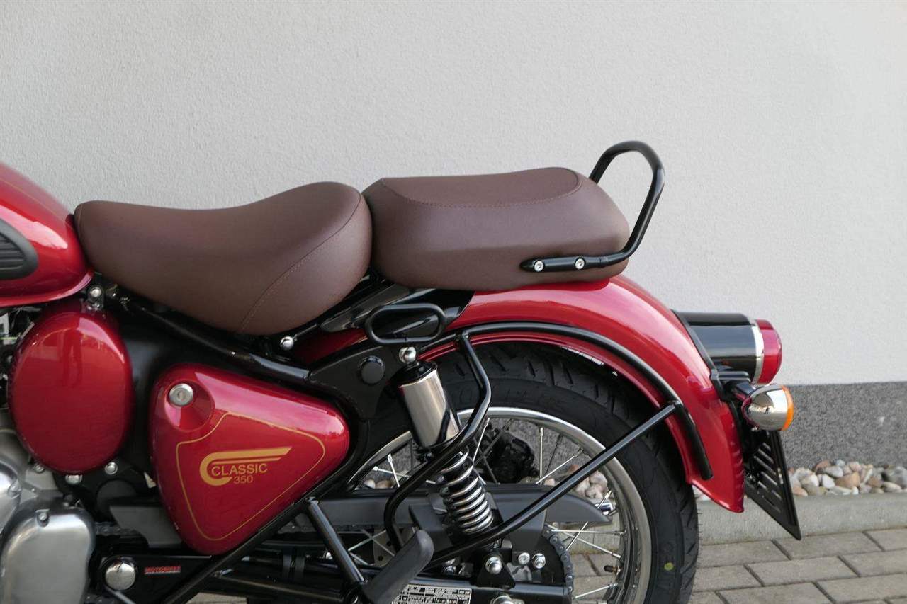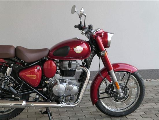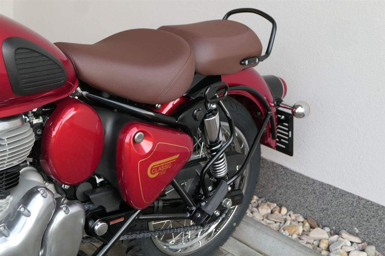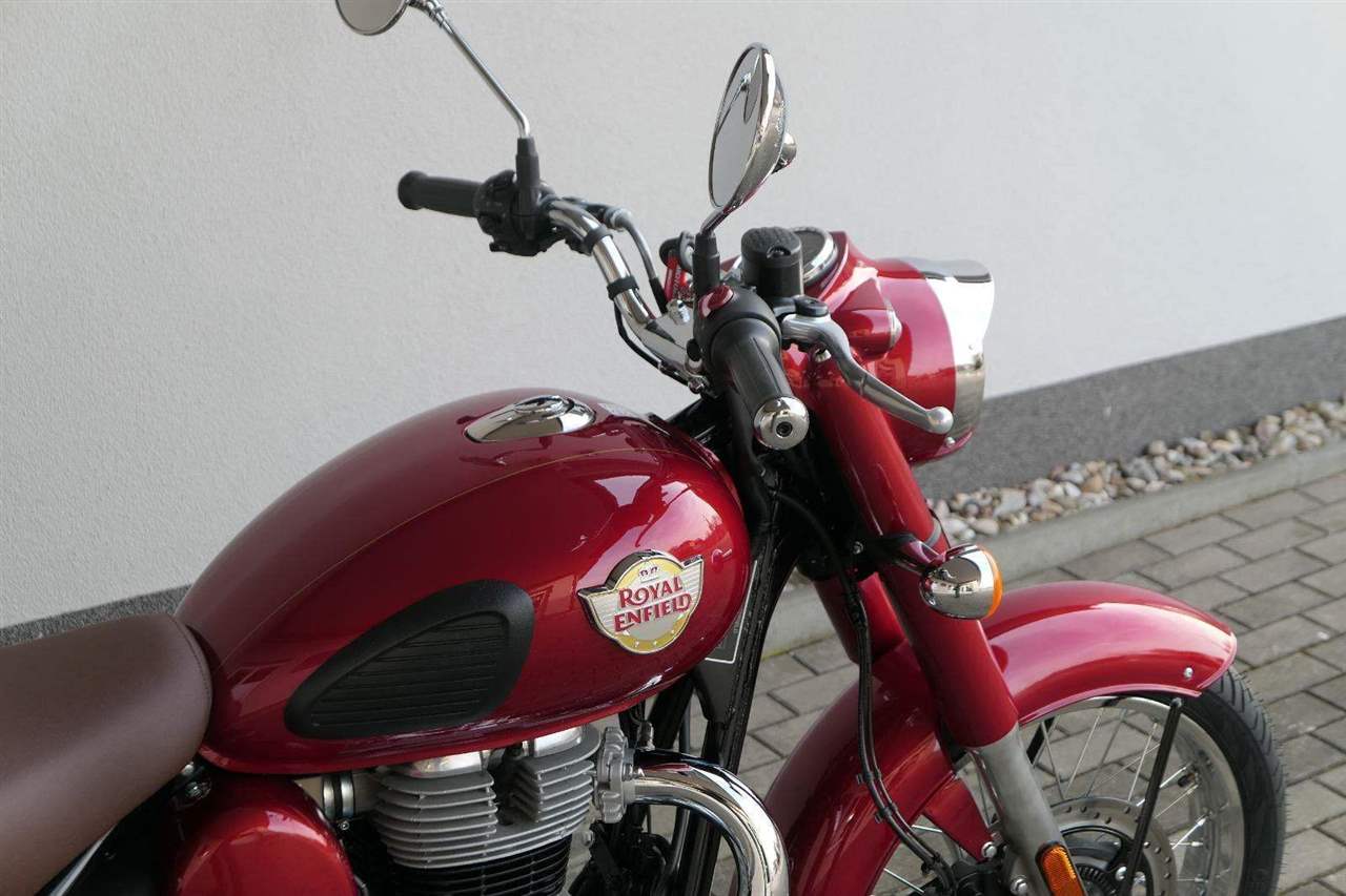 Ústředním prvkem nového Classic 350 je zcela nové srdce, které bije do jedinečného rytmu Royal Enfield. Ve spojení s novým rámem se dvěma spodními trubkami, který jezdí pevně a věrně, solidní a spolehlivou kvalitou konstrukce, je Classic vaším spojencem, ať už je váš cíl kdekoliv. Vzpřímená jízdní poloha dává jezdci Classicu vynikající vzhled na silnici, zatímco brzdy s větším průměrem zvyšují jeho brzdnou sílu. Ale silnější neznamená jen schopný a odolný, Classic je obdařen také pohodlím, s vylepšeným širším sedlem, které zpříjemňuje jízdu.