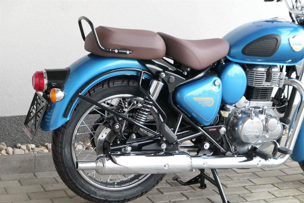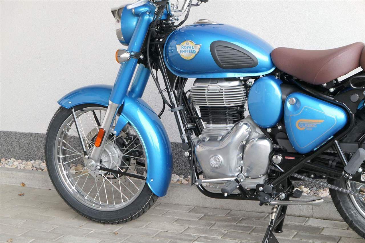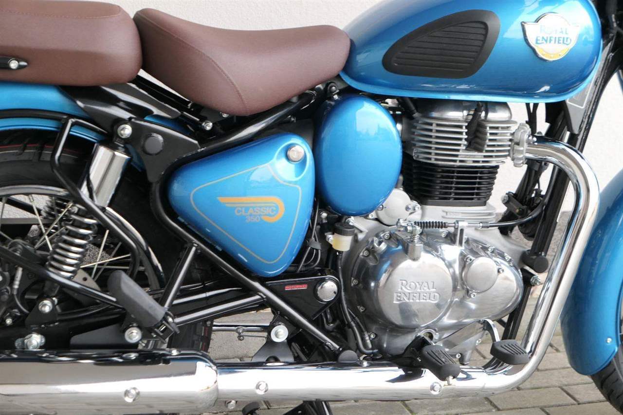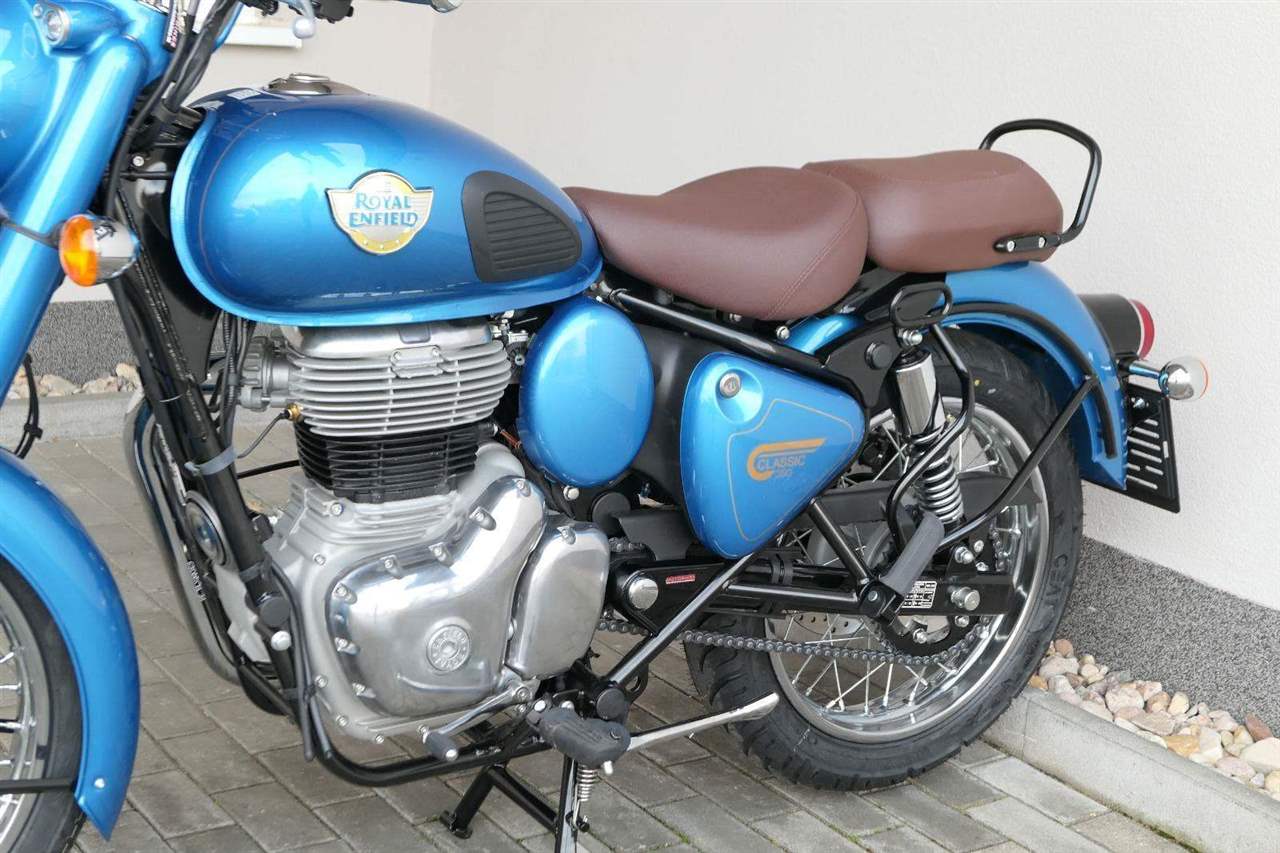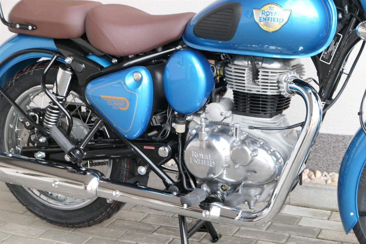 Ústředním prvkem nového Classic 350 je zcela nové srdce, které bije do jedinečného rytmu Royal Enfield. Ve spojení s novým rámem se dvěma spodními trubkami, který jezdí pevně a věrně, solidní a spolehlivou kvalitou konstrukce, je Classic vaším spojencem, ať už je váš cíl kdekoliv. Vzpřímená jízdní poloha dává jezdci Classicu vynikající vzhled na silnici, zatímco brzdy s větším průměrem zvyšují jeho brzdnou sílu. Ale silnější neznamená jen schopný a odolný, Classic je obdařen také pohodlím, s vylepšeným širším sedlem, které zpříjemňuje jízdu.