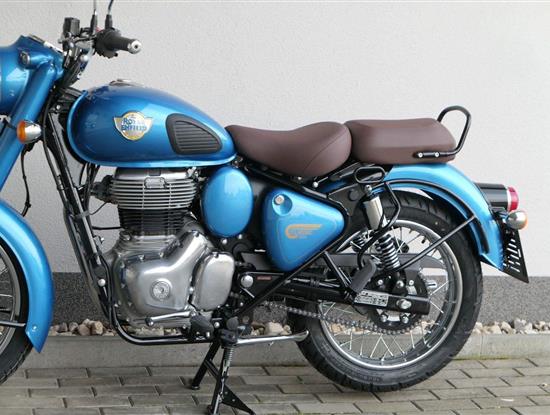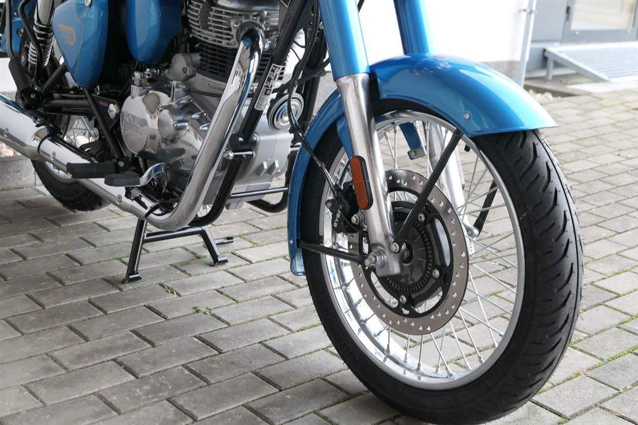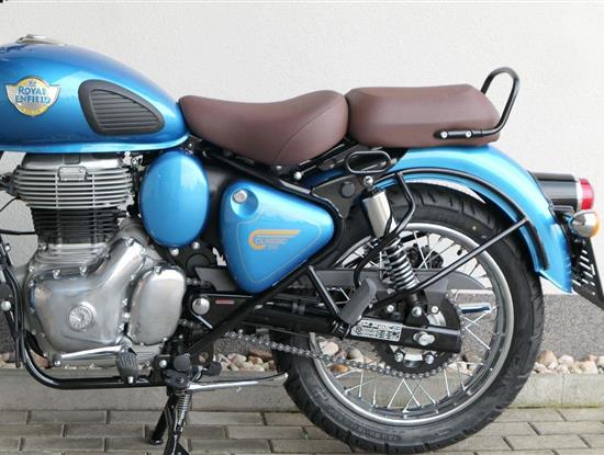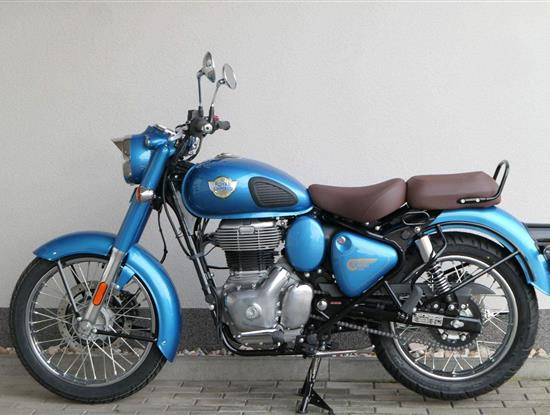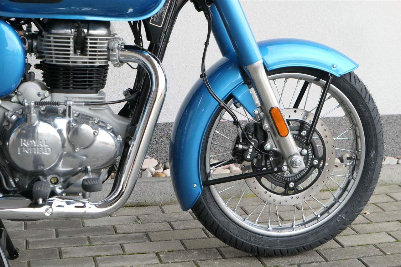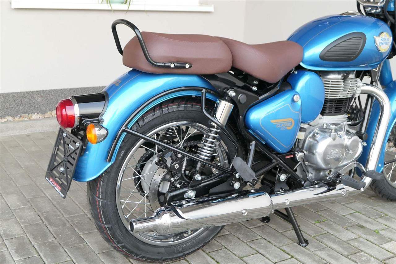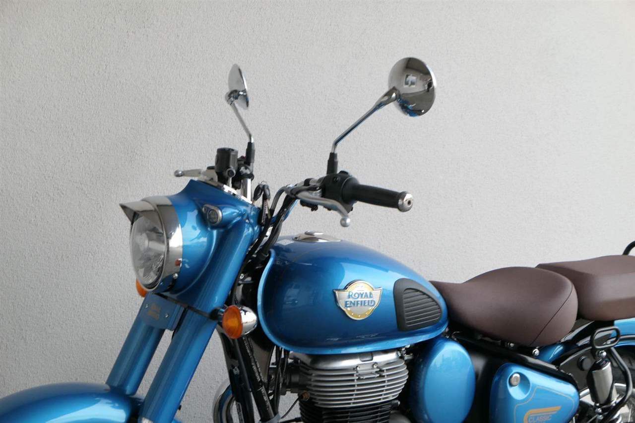 Ústředním prvkem nového Classic 350 je zcela nové srdce, které bije do jedinečného rytmu Royal Enfield. Ve spojení s novým rámem se dvěma spodními trubkami, který jezdí pevně a věrně, solidní a spolehlivou kvalitou konstrukce, je Classic vaším spojencem, ať už je váš cíl kdekoliv. Vzpřímená jízdní poloha dává jezdci Classicu vynikající vzhled na silnici, zatímco brzdy s větším průměrem zvyšují jeho brzdnou sílu. Ale silnější neznamená jen schopný a odolný, Classic je obdařen také pohodlím, s vylepšeným širším sedlem, které zpříjemňuje jízdu.