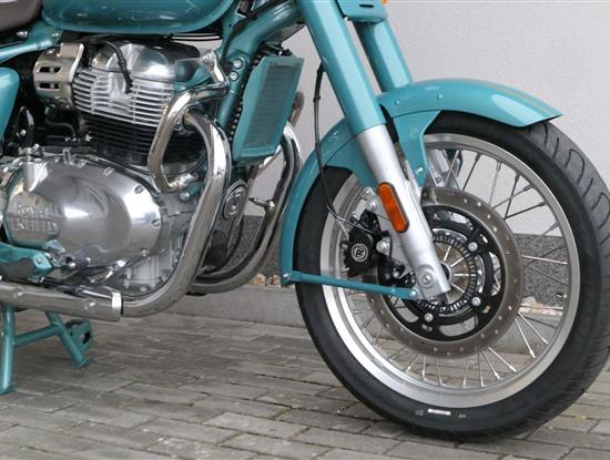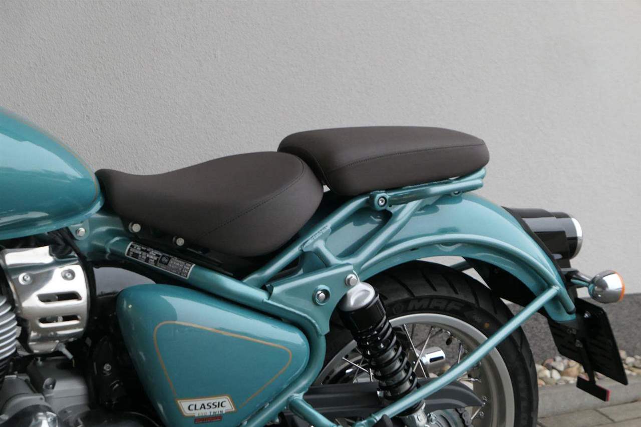 -sebejistotu a plynulost jízdy bez ohledu na to, kam máte namířeno, zajistí ověřené přední odpružení modelu Classic 650 i dvoutrubkové hydraulické zadní odpružení od společnosti Showa.