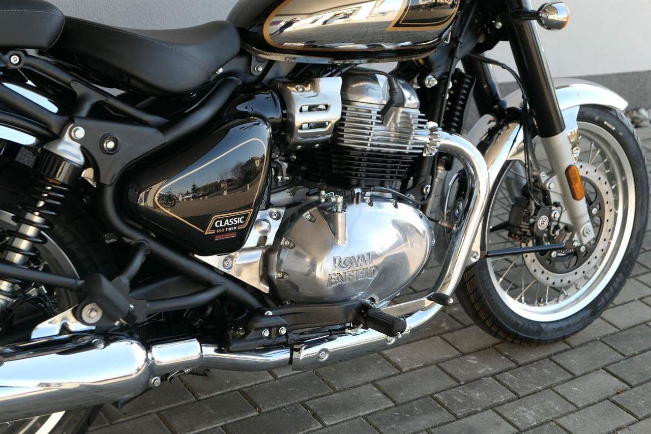 Dvakrát takový charakter. Dvakrát takové zpracování. Všechny nezaměnitelné rysy modelu Classic, nyní však s prověřeným pohonem 650 Twin. Oblíbený paralelní dvouválec Royal Enfield 648 ccm se představuje u modelu Classic 650 vůbec poprvé v nově vyladěné formě, která je kalibrovaná pro elegantní, plynulou jízdu, avšak s nedostižným výkonem, kdykoli si zamanete. Nový model Classic 650 Twin zůstává věrný své DNA a nabízí jezdcům výkonnou kombinaci estetiky staré školy a snadného přenosu výkonu. Jeho majestátní, aerodynamický tvar je poháněn proslulým motorem 650, což vede k jízdě, která je rychlá a ladná zároveň.