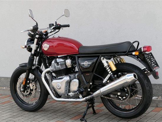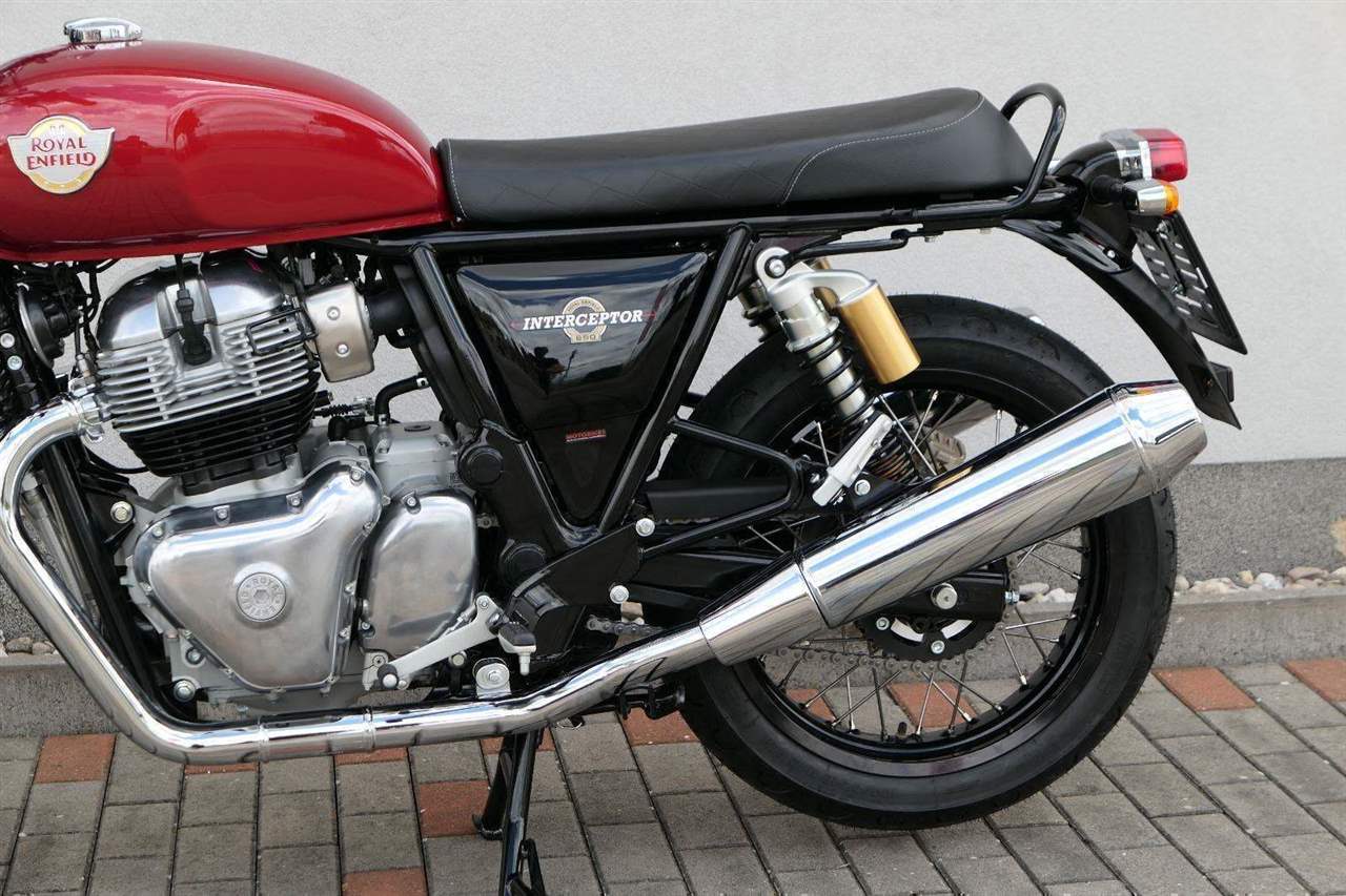 Typický moderní klasický roadster - se kterým je radost jezdit na klikatých silnicích, dálnicích, nebo v městské džungli, se stejnou lehkostí a grácií jak pro začátečníky tak pro zkušené jezdce. Easy come, easy GO Rám, vyvinutý ve spojení s legendárním Harris Performance, důkladně testován na odolnost, nabízí vynikající rovnováhu a ovladatelnost. Spolu s jemně vyladěným odpružením s dvojitými tlumiči naplněnými plynem pro dosažení optimální kombinace pohodlí a cítění podvozku zajišťuje, že s GT 650 je jízda dynamická a živá jako nikdy předtím. Srdce všeho Vzduchem / olejem chlazená paralelní dvojitá konfigurace, která byla vybrána pro své nezahlcené linie. Motor 648 cm3 vytvořen pro jízdu v reálném světě, s dostatečnou silou pro lehkou jízdu v městské dopravě nebo bez námahy na otevřené cestě. Dvojité těleso škrticí klapky spárované s vysoce přesným systémem vstřikování paliva Bosch vede k vynikající odezvě škrtící klapky v celém rozsahu otáček. Smooth operator Klasická estetika 18 "kola, jejichž konstrukce a složení byly speciálně vyvinuty pro Royal Enfield pro doplnění podvozku a odpružení ve všech jízdních podmínkách. Kombinace dvojitého pístu odvozeného od Brembo, plovoucí přední disk a dvoukanálový systém ABS Bosch zajišťují spolehlivé brzdění s progresivní zpětnou vazbou. Paralela bez paralel Se širokým opěrným řídítkem má Interceptor komfortní vzpřímenou řídící jízdní polohu. Ergonomický trojúhelník, který je tvořen řídítky, má nízké sedadlo a stopu, je nastaven pro pohodlí s jemným sportovním zaujetím, který pomáhá jezdci co nejvíce využít agilního podvozku a intuitivně se s ním propojit. Stará škola nově Zatímco nádherně tvarované linie lesklého, ručně leštěného hliníkového motoru pokrývají zlatou éru motocyklů, to, co nutí otáčet hlavy, je hluboký zvuk výfuku - vytvářející buď opojný rytmické bublání, nebo mohutné dunění. Dokonalost v detailech Royal Enfield poprvé používá šestistupňovou převodovku, vyvinutou speciálně pro 650 Twin - prošla náročným testováním, s pečlivě vybranými převodovými poměry, které dodávají nejlepší poměr pro všechny jízdní podmínky. Výsledek je patrný z optimálního řazení a ideálního záběru. Převodovka je doplněna o spojku, která má asistovanou funkci pro lehký stisk páky.