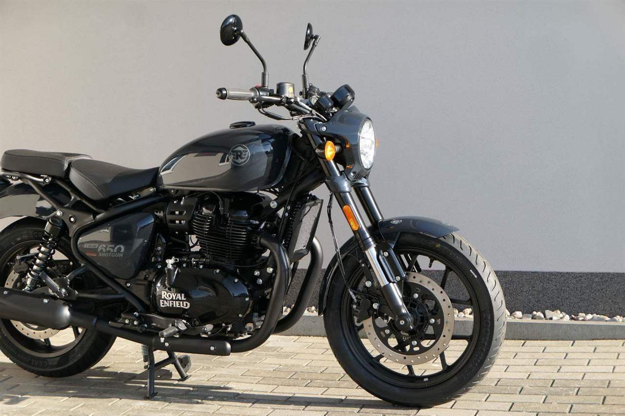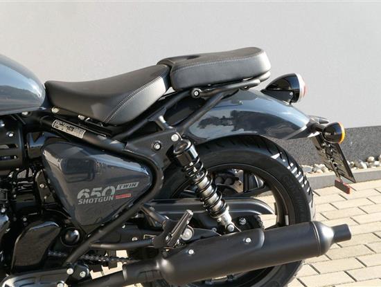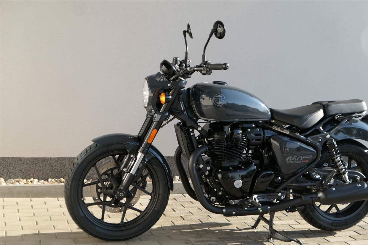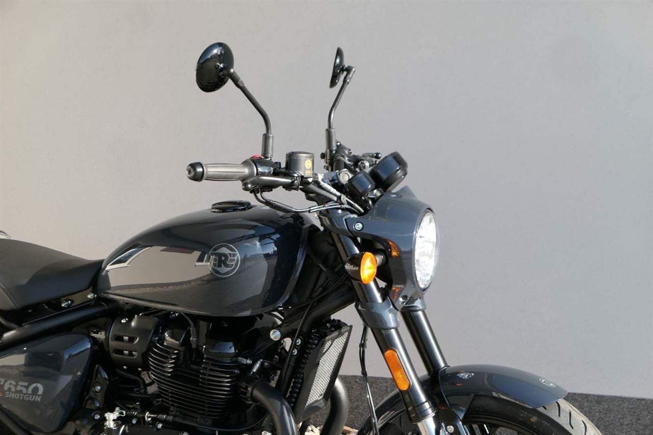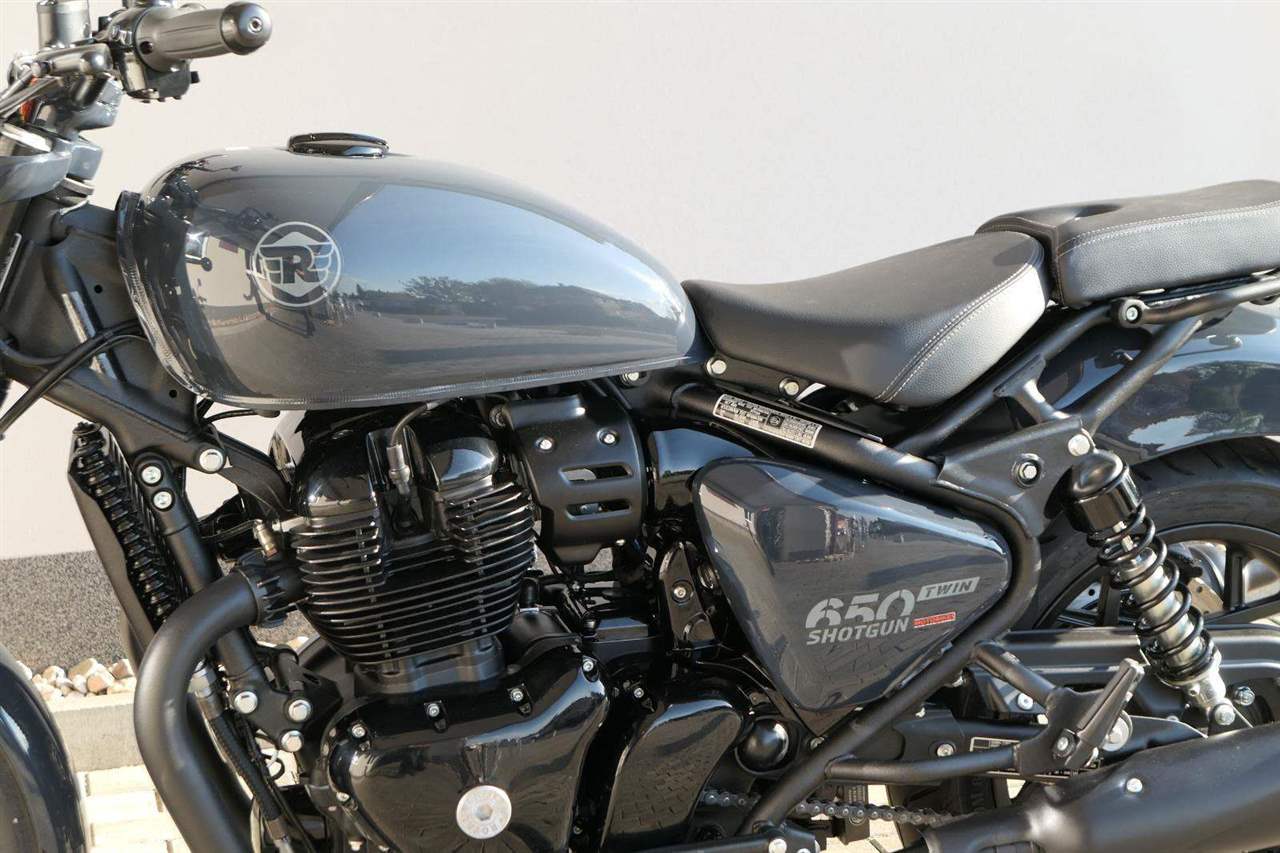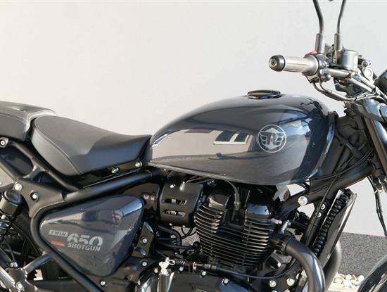 Nový Royal Enfield Shotgun 650 je motocykl, který je definován svým jezdcem. Jeho zcela nová karoserie a postoj jsou prázdným plátnem, které se vzpírá tradiční kategorizaci motocyklů a přebírá osobnost svého jezdce. Jeho modulární konstrukce umožňuje snadné přepínání mezi třemi režimy - od jednomístného přes dvoumístný až po cestovní vůz pro přepravu zavazadel. Otočením klíčku se odklopí sedadlo spolujezdce, což nabízí maximální flexibilitu. Těm, kteří hledají poutavou a agresivní jízdu, nebo těm, kteří hledají pohodovější zážitek, Shotgun 650 bez námahy vyhoví svou vzpřímenou a jistou jízdní pozicí, která podporuje obojí a přizpůsobuje se náladě a stylu jízdy jezdce. Kombinuje retro-futuristický design s moderními prvky. LED světlomet umístěný v nádherné neomoderní gondole na zakázku zůstává věrný estetice neo-retro fúze a zároveň nabízí lepší viditelnost. Motocykl je vybaven digitálně-analogovým sdruženým přístrojem, který je vybaven navigačním systémem Tripper a je navržen tak, aby poskytoval všechny informace, které potřebujete, když se vydáte na cestu. Je také vybaven nabíjecím portem USB, abyste měli svá zařízení na cestách stále nabitá.