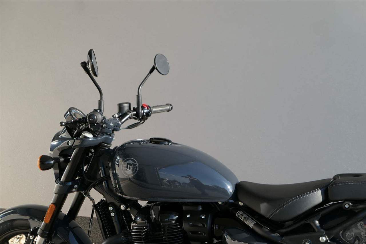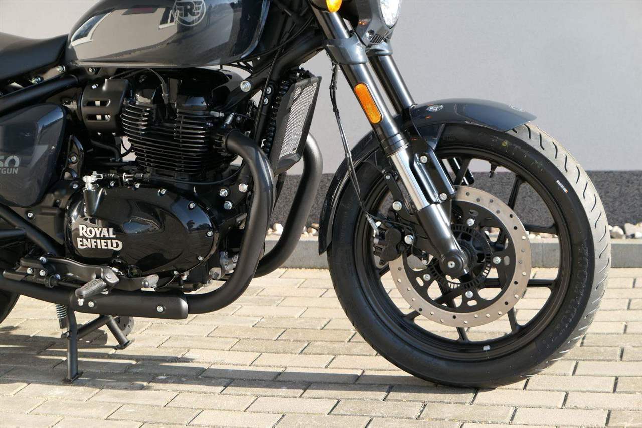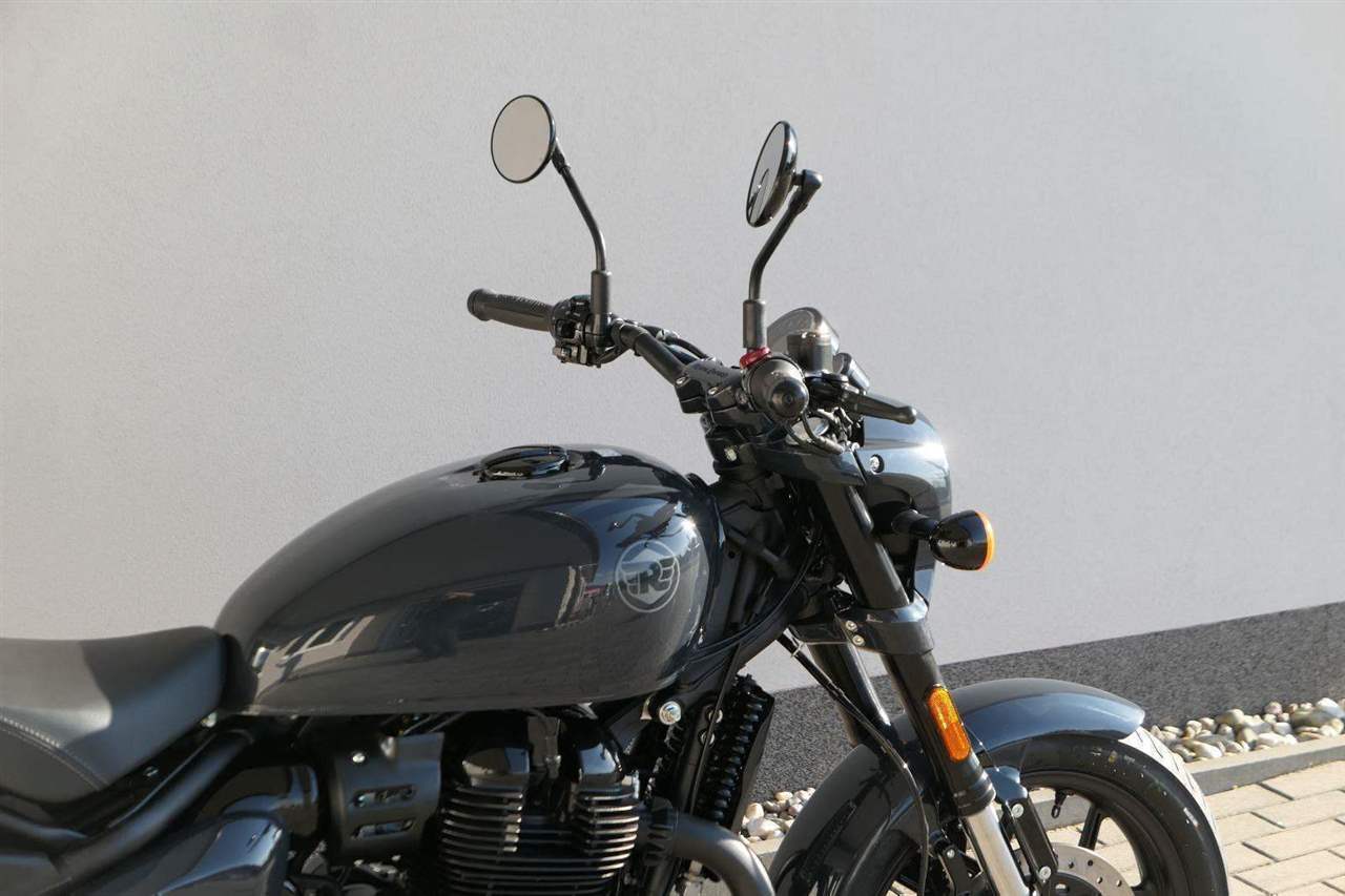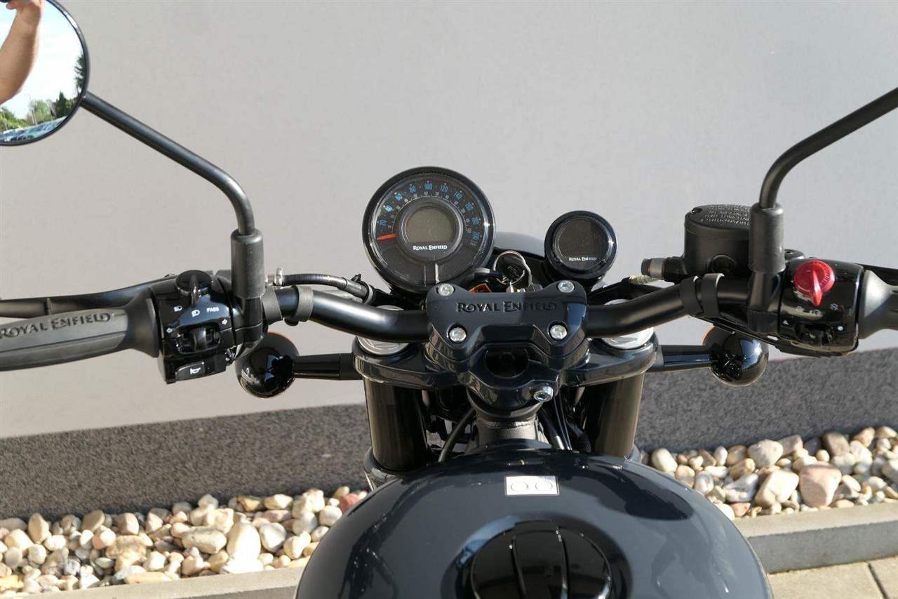 Nový Royal Enfield Shotgun 650 je motocykl, který je definován svým jezdcem. Jeho zcela nová karoserie a postoj jsou prázdným plátnem, které se vzpírá tradiční kategorizaci motocyklů a přebírá osobnost svého jezdce. Jeho modulární konstrukce umožňuje snadné přepínání mezi třemi režimy - od jednomístného přes dvoumístný až po cestovní vůz pro přepravu zavazadel. Otočením klíčku se odklopí sedadlo spolujezdce, což nabízí maximální flexibilitu. Těm, kteří hledají poutavou a agresivní jízdu, nebo těm, kteří hledají pohodovější zážitek, Shotgun 650 bez námahy vyhoví svou vzpřímenou a jistou jízdní pozicí, která podporuje obojí a přizpůsobuje se náladě a stylu jízdy jezdce. Kombinuje retro-futuristický design s moderními prvky. LED světlomet umístěný v nádherné neomoderní gondole na zakázku zůstává věrný estetice neo-retro fúze a zároveň nabízí lepší viditelnost. Motocykl je vybaven digitálně-analogovým sdruženým přístrojem, který je vybaven navigačním systémem Tripper a je navržen tak, aby poskytoval všechny informace, které potřebujete, když se vydáte na cestu. Je také vybaven nabíjecím portem USB, abyste měli svá zařízení na cestách stále nabitá.