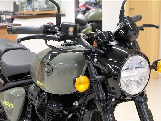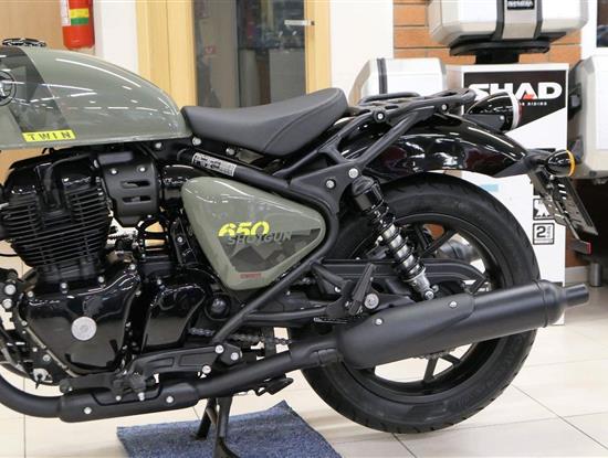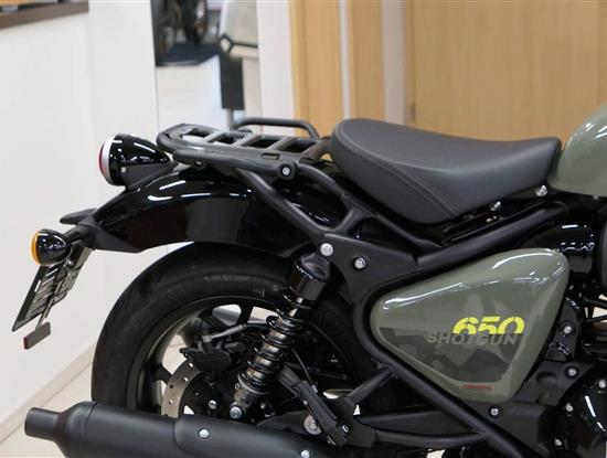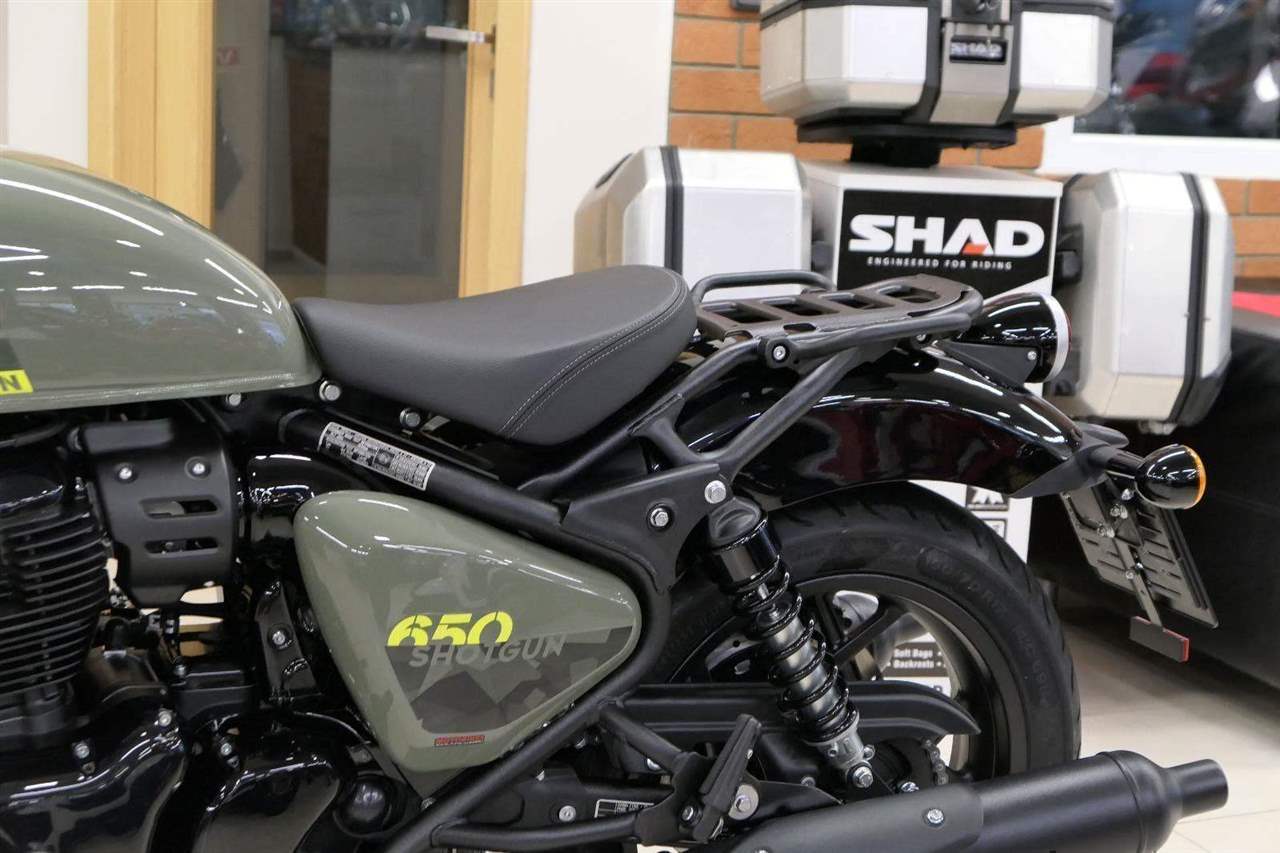 Nový Royal Enfield Shotgun 650 je motocykl, který je definován svým jezdcem. Jeho zcela nová karoserie a postoj jsou prázdným plátnem, které se vzpírá tradiční kategorizaci motocyklů a přebírá osobnost svého jezdce. Jeho modulární konstrukce umožňuje snadné přepínání mezi třemi režimy - od jednomístného přes dvoumístný až po cestovní vůz pro přepravu zavazadel. Otočením klíčku se odklopí sedadlo spolujezdce, což nabízí maximální flexibilitu. Těm, kteří hledají poutavou a agresivní jízdu, nebo těm, kteří hledají pohodovější zážitek, Shotgun 650 bez námahy vyhoví svou vzpřímenou a jistou jízdní pozicí, která podporuje obojí a přizpůsobuje se náladě a stylu jízdy jezdce. Kombinuje retro-futuristický design s moderními prvky. LED světlomet umístěný v nádherné neomoderní gondole na zakázku zůstává věrný estetice neo-retro fúze a zároveň nabízí lepší viditelnost. Motocykl je vybaven digitálně-analogovým sdruženým přístrojem, který je vybaven navigačním systémem Tripper a je navržen tak, aby poskytoval všechny informace, které potřebujete, když se vydáte na cestu. Je také vybaven nabíjecím portem USB, abyste měli svá zařízení na cestách stále nabitá.