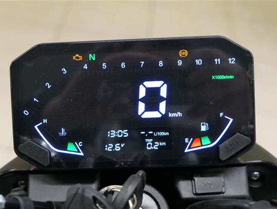 Výbava patří ke špičce ve třídě. Dominantou je 7" barevný LCD displej, který je perfektně čitelný za všech světelných podmínek. Kompletní LED osvětlení doplňují originální designové LED pásky po stranách nádrže, které motocyklu dodávají nezaměnitelný vzhled. Pohodlný posed, široká řídítka a výška sedla 795 mm zajišťují komfort i při delších jízdách.